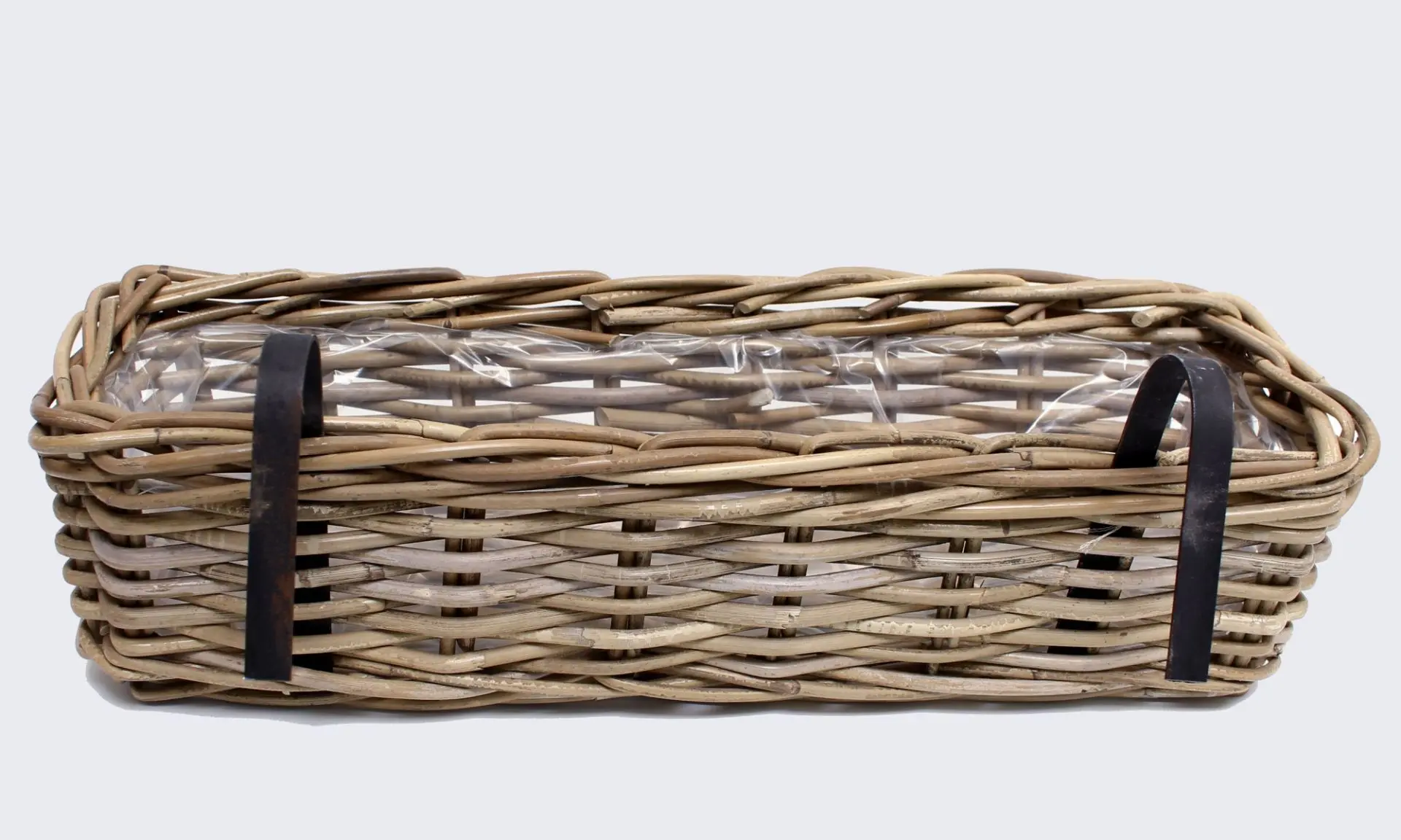 in der Trendfarbe Koboo-Grey, schön verflochten in stabiler Qualität, schwarze Metallbügel, ausgeschlagen mit Folie, zum Bepflanzen geeignet