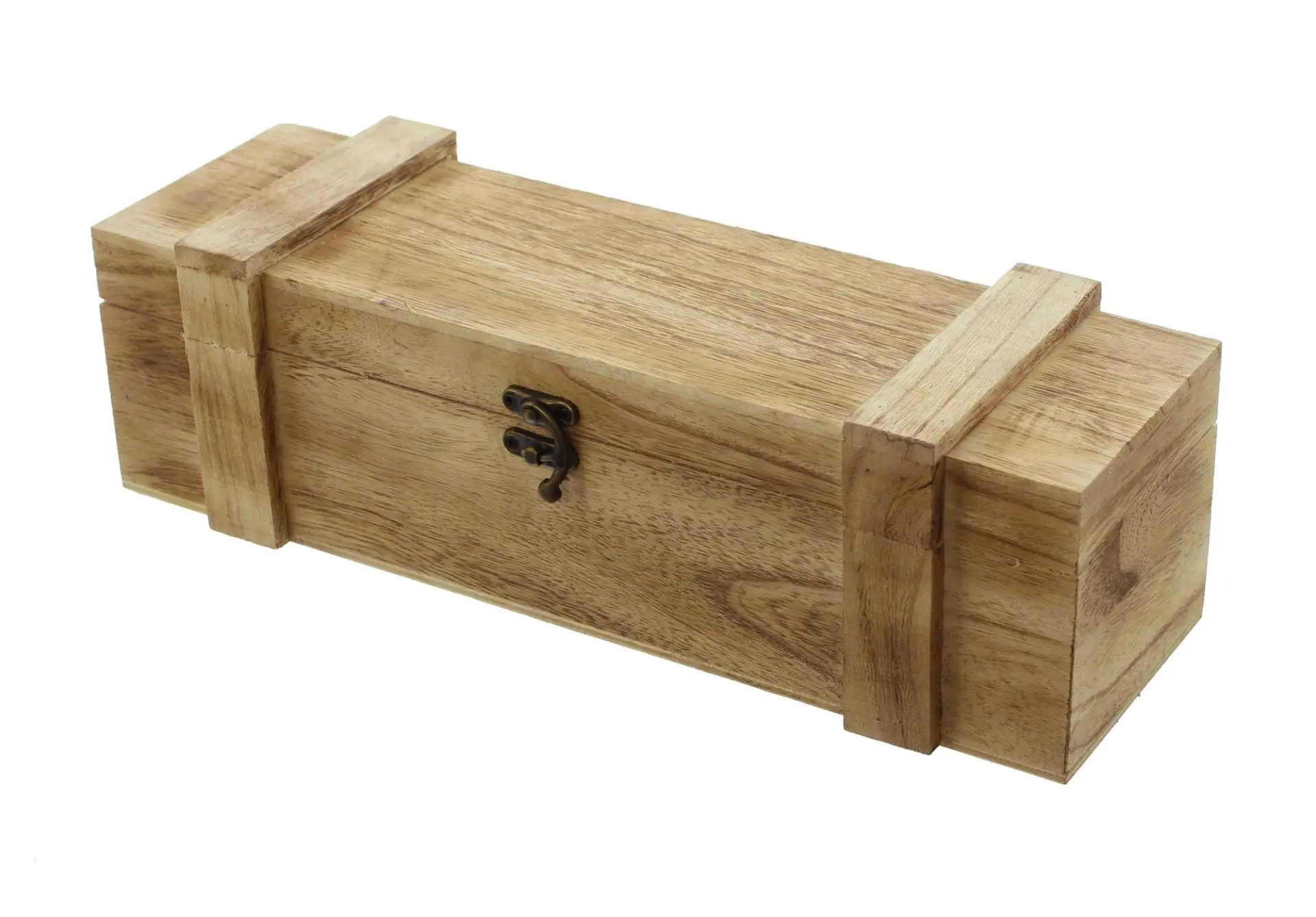 originelle Verpackungsidee in schönem Braunton mit natürlicher Maserung, aufklappbar mit filigranem Metallverschluss