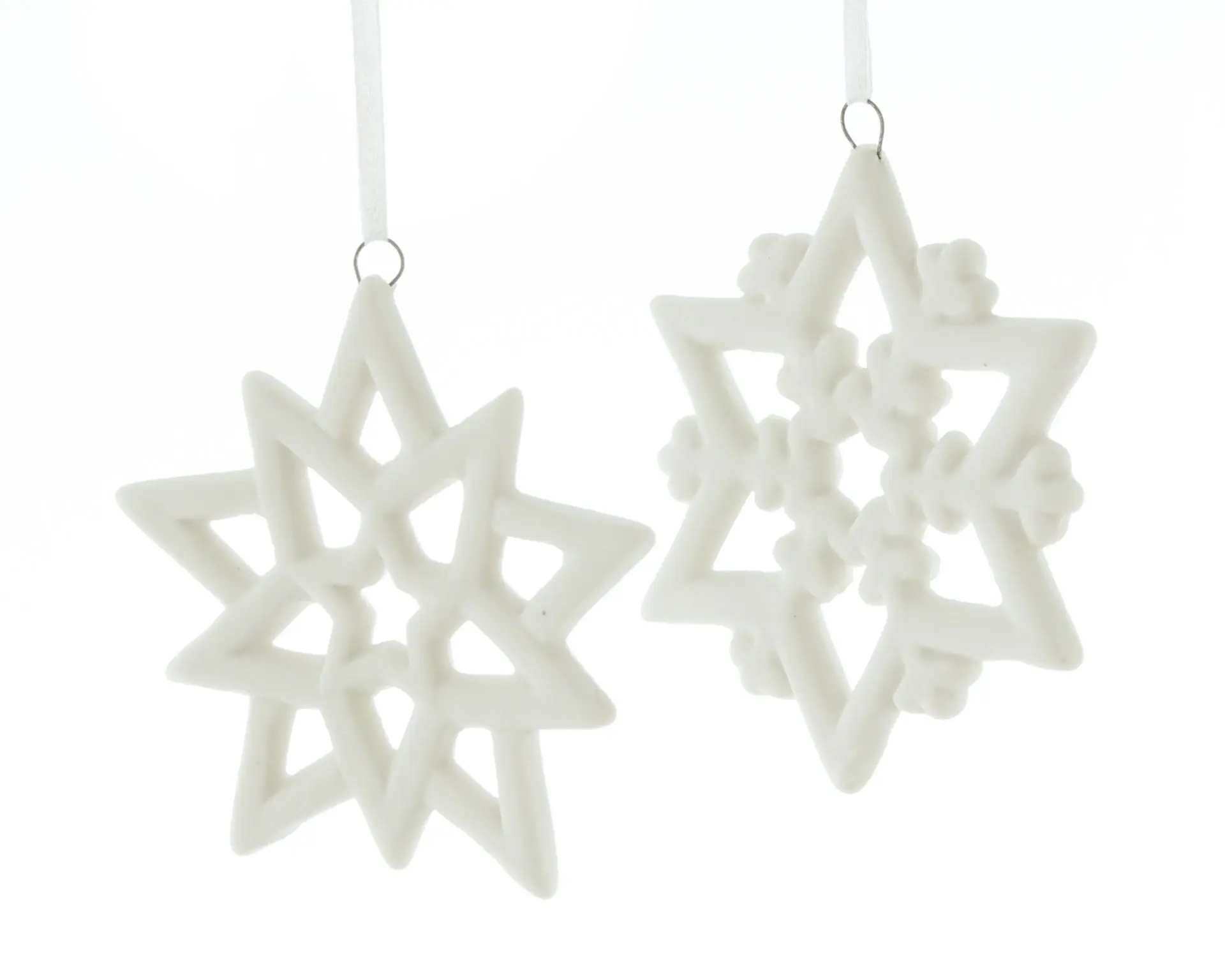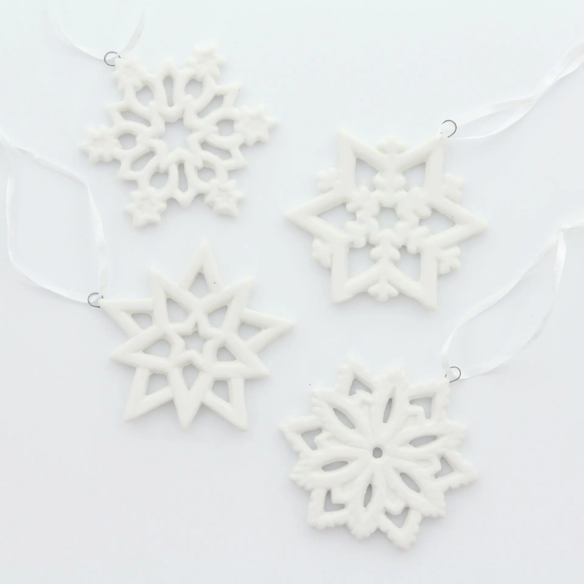 in mattem Weiß, filigran gearbeitetes Porzellan in 4 verschiedenen Ausführungen, Satinbandschlaufe
