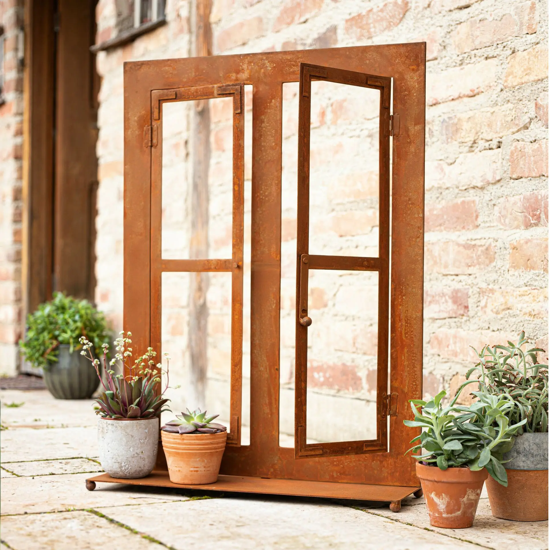 Unser Dekofenster "Rost" ist aus Metall gefertigt und punktet mit seinem trendigen Design. Die Flügeltüren lassen sich öffnen und schließen und ist somit eine tolle Ergänzung für Ihr Zuhause!
