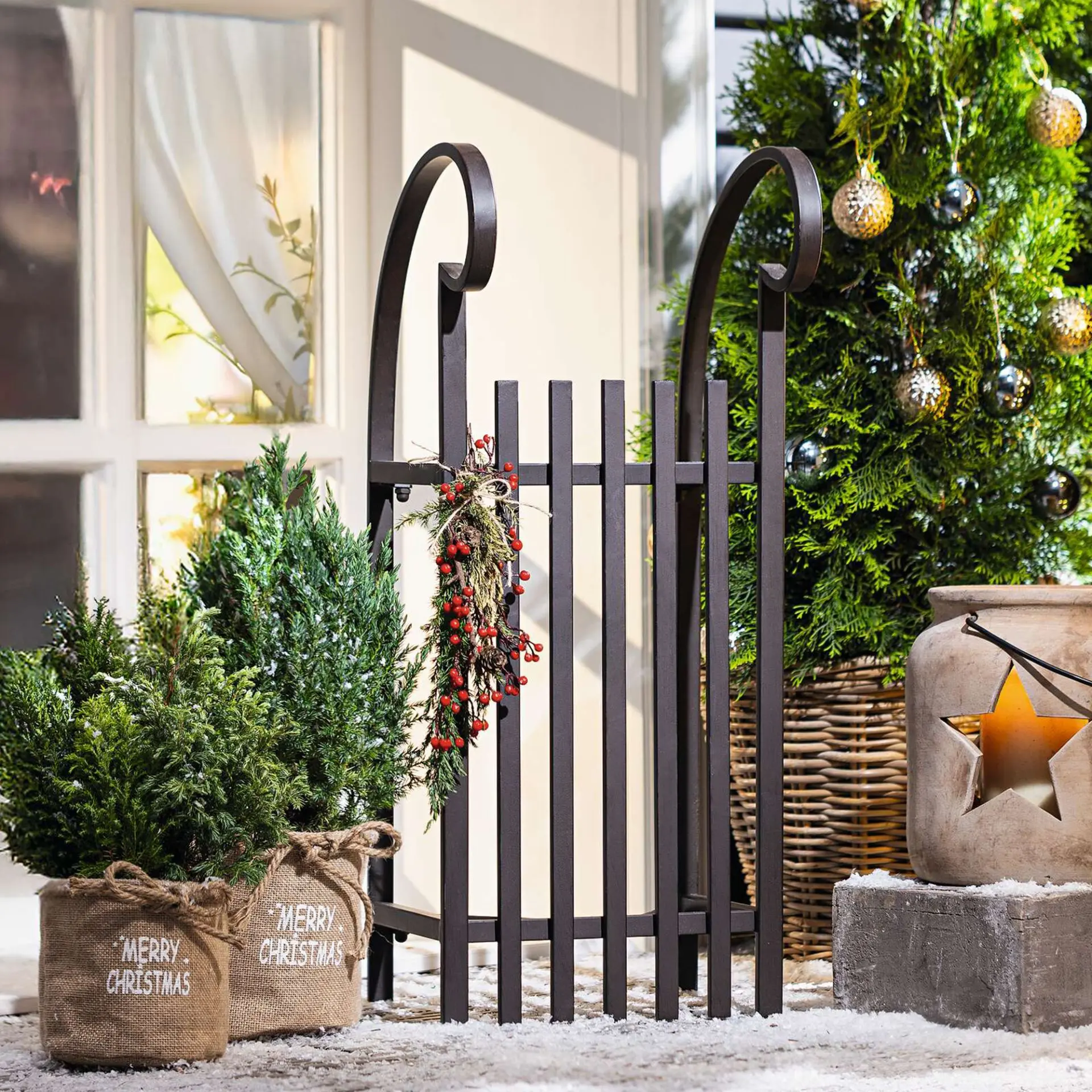 Bringen Sie mit dem Dekoschlitten „Classique“ festliche Stimmung in Ihr Zuhause! Das dunkelbraun lackierte Metall im modernen Design verleiht jedem Raum einen stilvollen Weihnachtszauber. Ein eleganter Hingucker, der Tradition und zeitgemäße Ästhetik perfekt verbindet – für Sie und Ihre Gäste.zaubert weihnachtliche Stimmung, dunkelbraun lackiertes Metall in modernem Design