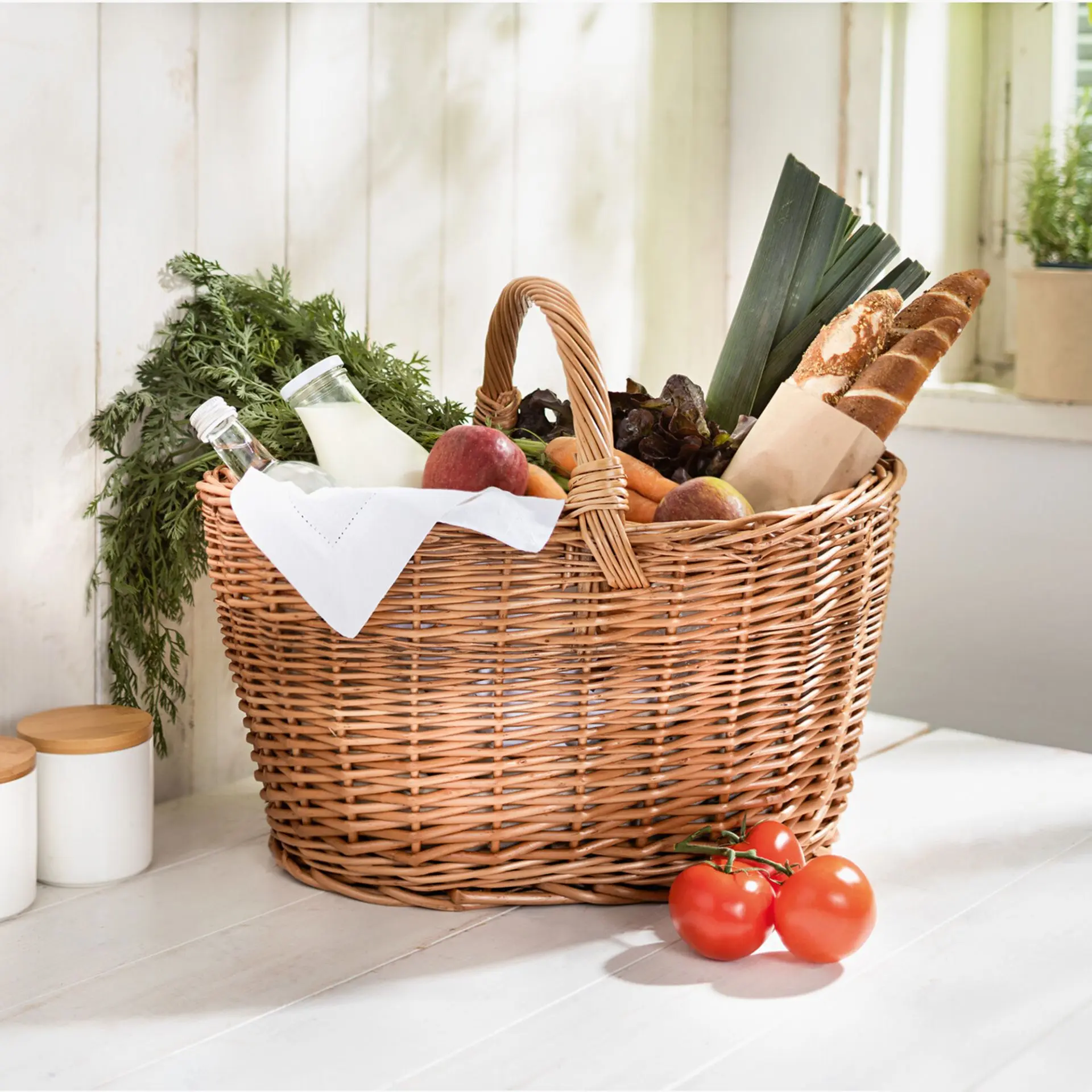 Einkaufskorb aus Vollweide, Natur lackiert.