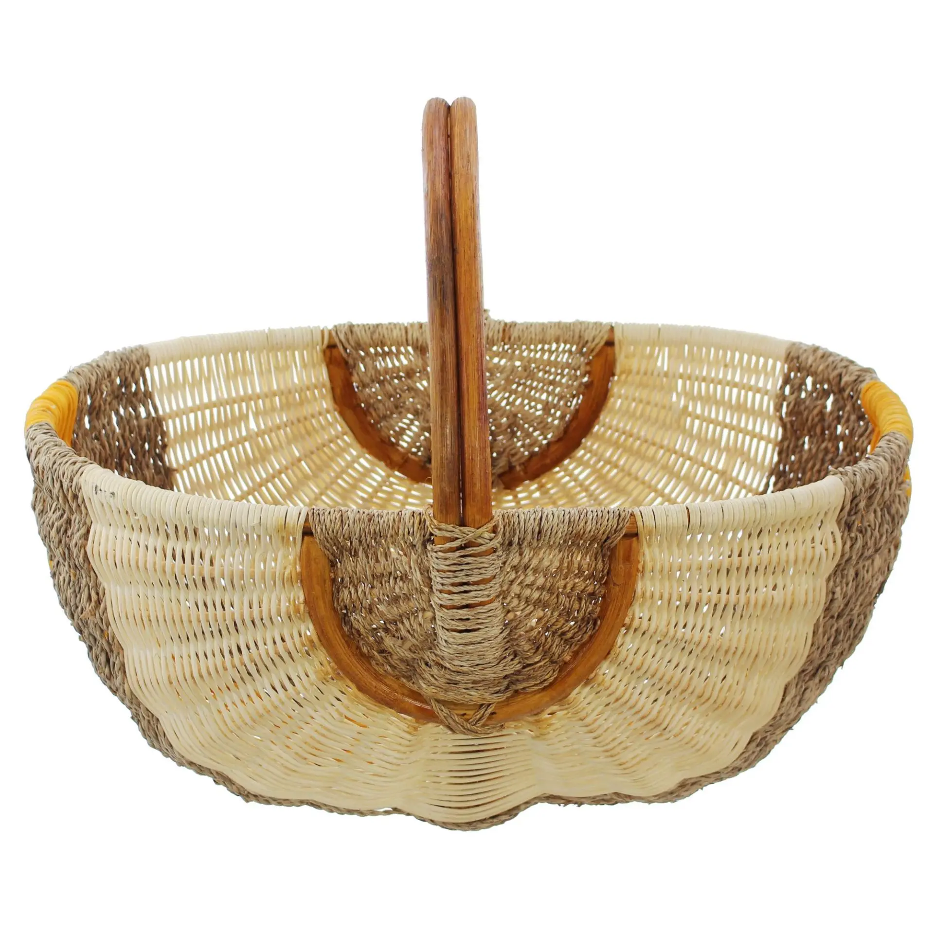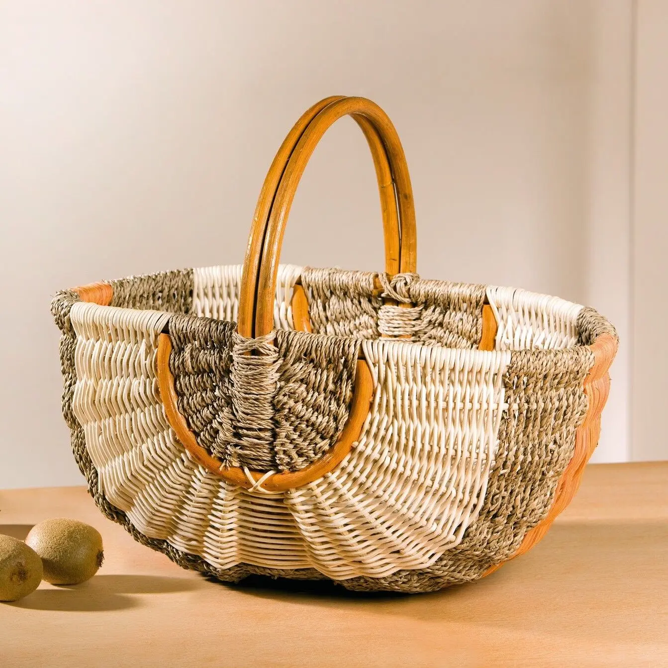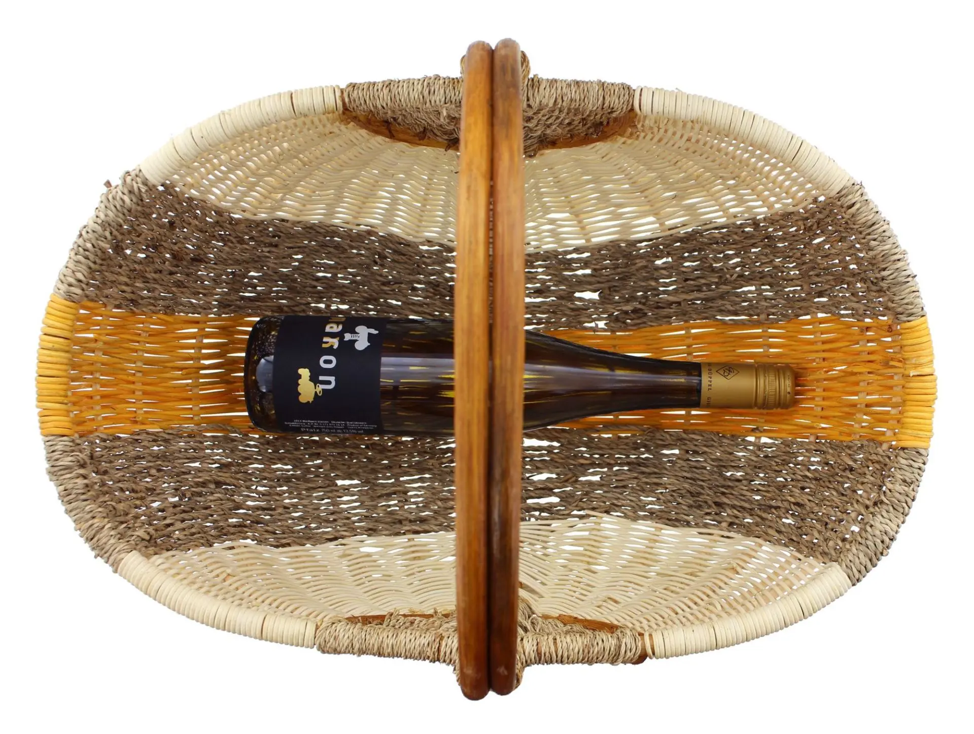 Seegras und Rattan in schönen Natur- und Orangetönen, dekorativ auf Rattanrahmen geflochten, stabiler Rattanbügel