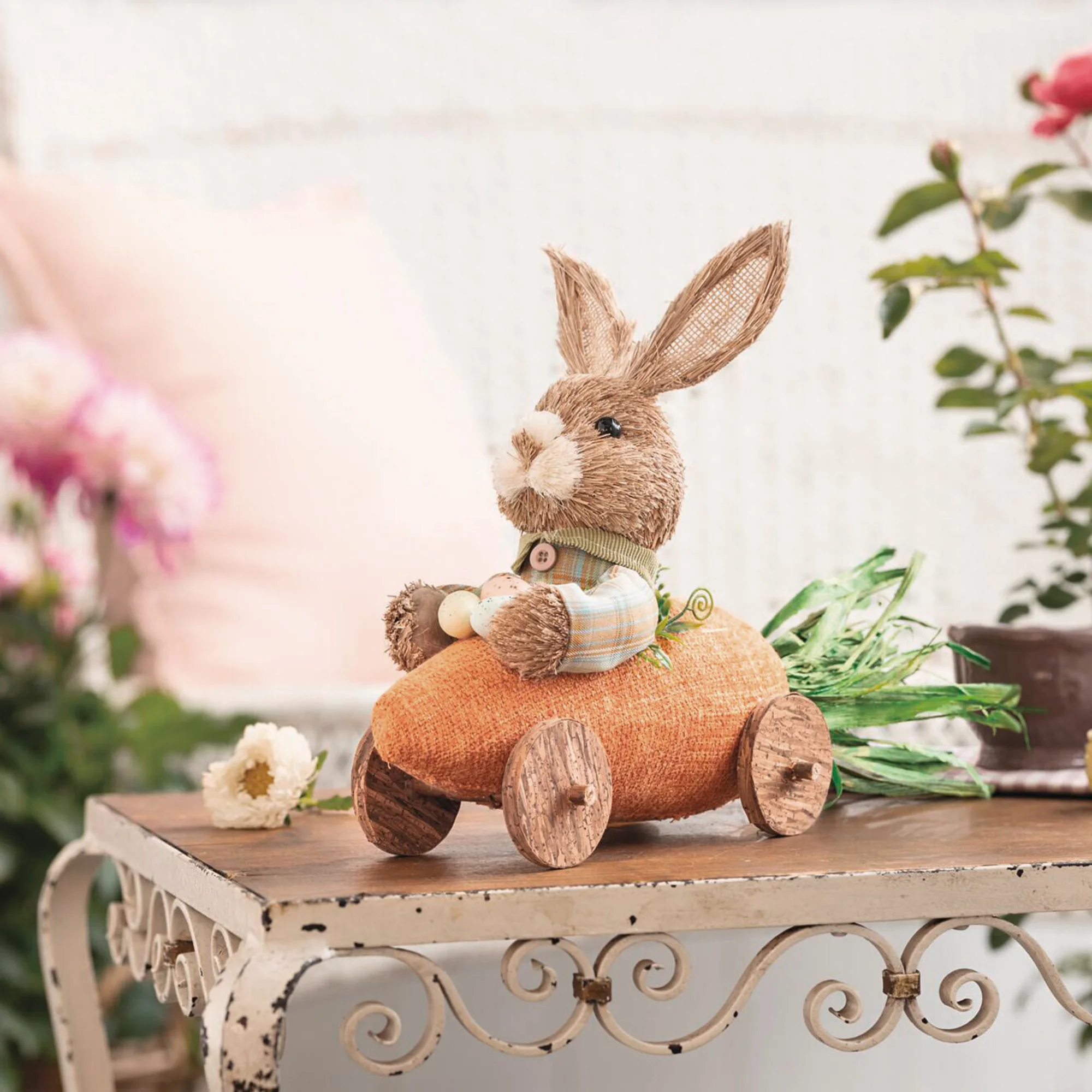 Bringen Sie frischen Schwung in Ihre Osterdekoration mit der Hasenfigur "Car-rott". Diese außergewöhnliche Figur kombiniert rustikales Stroh, diverse Textilien sowie kunstvoll gefertigte Kunststoff-Eier und -Pflanzen zu einem einzigartigen Blickfang. Die detailreiche Hasenfigur in einer fahrbaren Karotte verleiht Ihrem Zuhause einen originellen und stilvollen Akzent. Setzen Sie auf Qualität und Charme für ein unvergessliches Osterambiente.