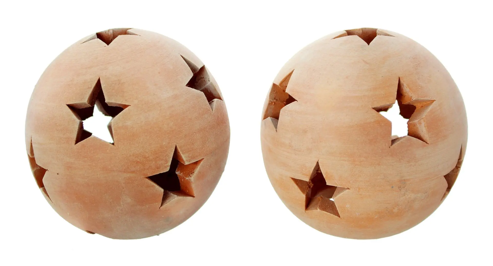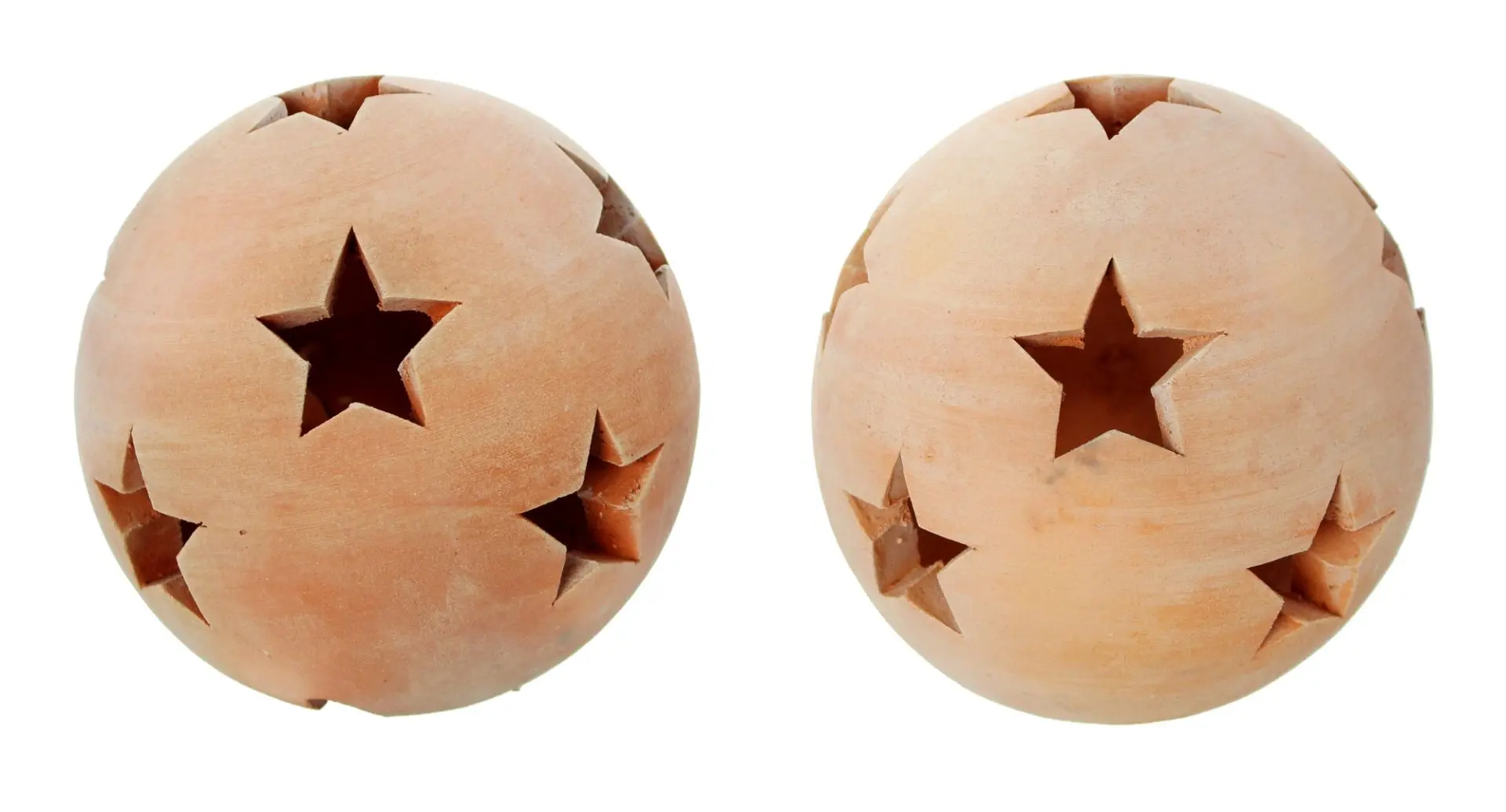 Entdecken Sie das elegante 2er Set der Kugel "Sterne" aus hochwertiger Terracotta in einem wunderschönen Naturton. Diese kleinen Kugeln, mit einem Durchmesser von ca. 12 cm, bestechen durch ihre schwere Qualität und die zusätzliche Kabelaussparung, die eine vielseitige Nutzung ermöglicht. Perfekt als stilvolle Dekoration für Ihr Zuhause oder Garten, bringen diese Kugeln einen Hauch von natürlicher Schönheit und zeitloser Eleganz in jeden Raum.