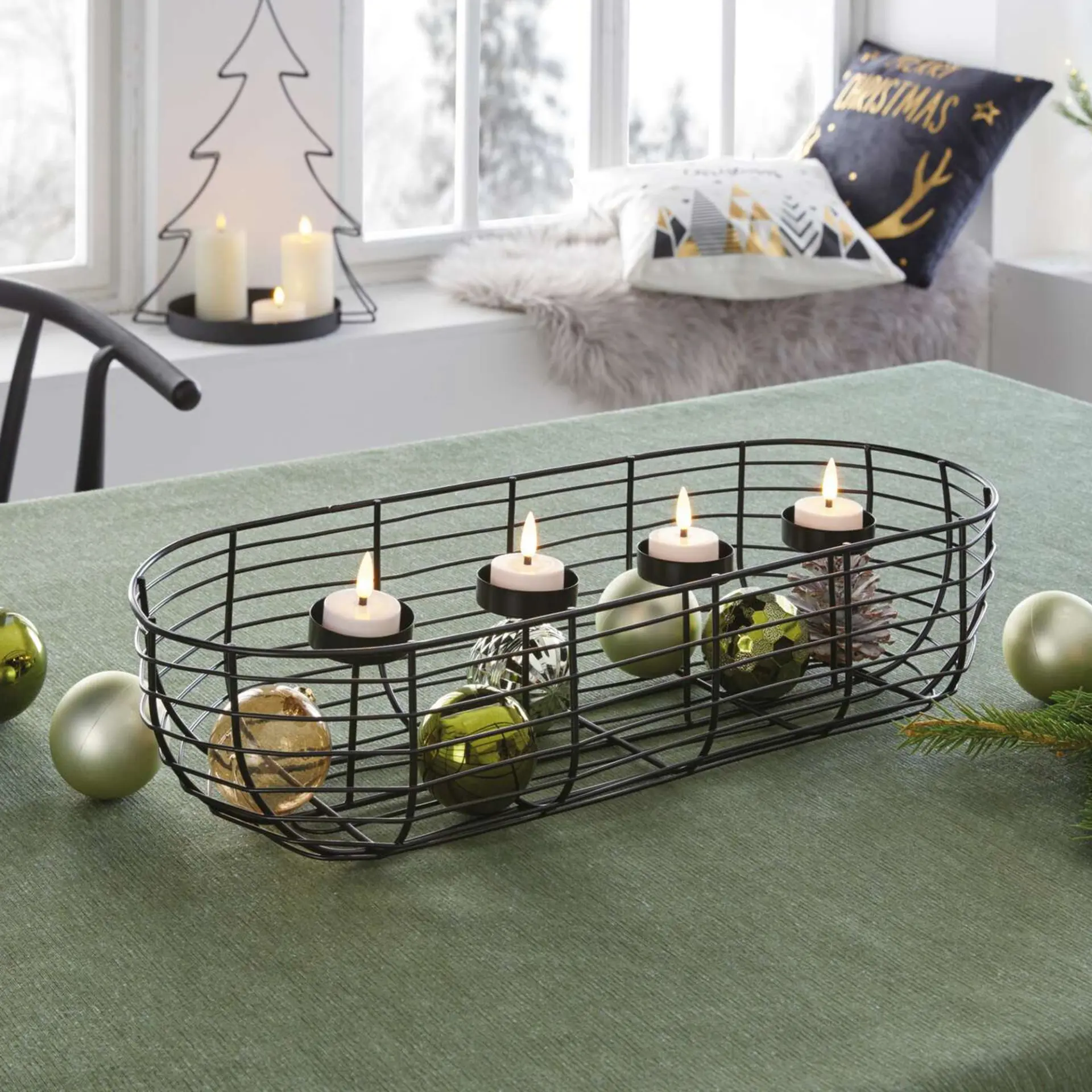 Setzen Sie stilvolle Akzente in Ihrem Zuhause mit dem Kerzenhalter „Black“. Das mattschwarz lackierte Metall verleiht ihm zeitlose Eleganz, während die vier stabilen Kerzenschälchen für sicheren Halt sorgen. Der großzügige Korb bietet vielfältige Dekorationsmöglichkeiten und schafft eine harmonische Stimmung in jedem Raum. Ein perfektes Accessoire für anspruchsvolle Dekorateure.mattschwarz lackiertes Metall, 4 stabile Kerzenschälchen, großer Korb, ideal zum Dekorieren