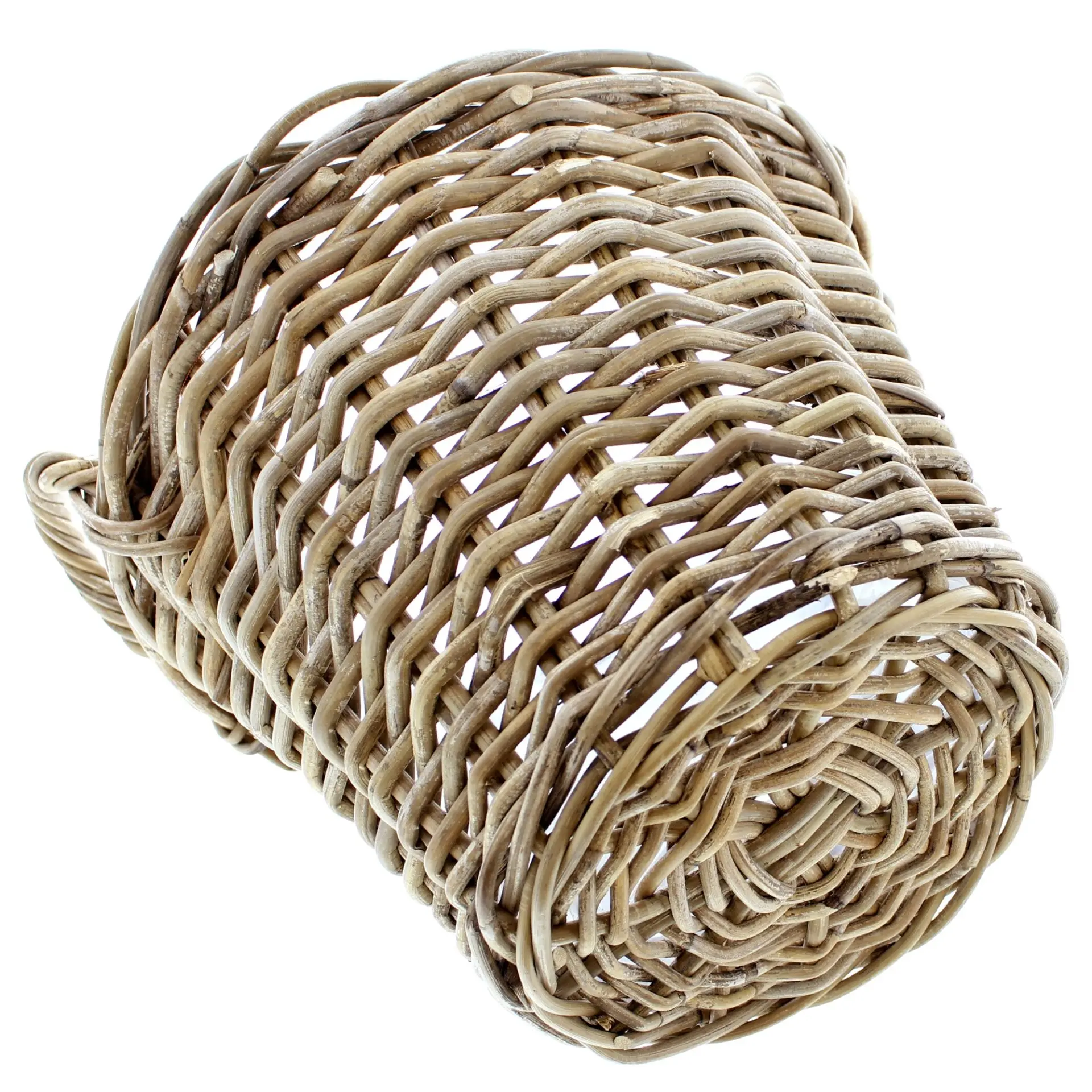 Mit dem Pflanzkorb "Rattan", groß erhalten Sie einen hochwertigen, dekorativen und stabilen Korb aus Rattan. Das Material ist in einer dezent grauen Farbe gekalkt und sehr stabil verflochten. Er ist mit Folie ausgeschlagen und zum Bepflanzen geeignet. Die trendige Optik und die seitlichen Griffe machen den Korb zu einem echten Blickfang.in trendiger Optik, seitliche Griffe, dezent grau gekalktes Rattan, stabil verflochten, ausgeschlagen mit Folie, zum Bepflanzen geeignet
