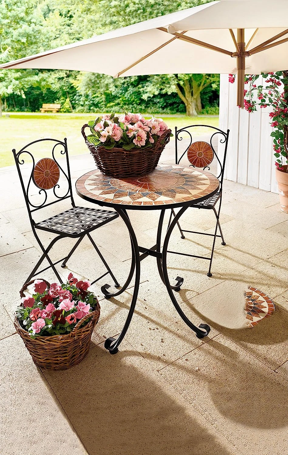 Entdecken Sie den Tisch "Mosaik" - ein stilvolles Möbelstück für Ihr Zuhause! Mit seiner schwarz lackierten Metallstruktur und der aufwändig gearbeiteten Tischplatte aus Steinmosaik ist dieser Tisch nicht nur ein Blickfang, sondern auch äußerst robust und langlebig. Mit einem Durchmesser von 70 cm und einer Höhe von 76 cm bietet er genügend Platz für gemütliche Abende mit Familie und Freunden. Die einfache Selbstmontage ermöglicht eine schnelle und unkomplizierte Aufstellung. Bitte beachten Sie, dass die Lieferung dieses Produktes nur innerhalb von Deutschland möglich ist. Überzeugen Sie sich selbst von der Qualität und dem Design des Tisches "Mosaik"!