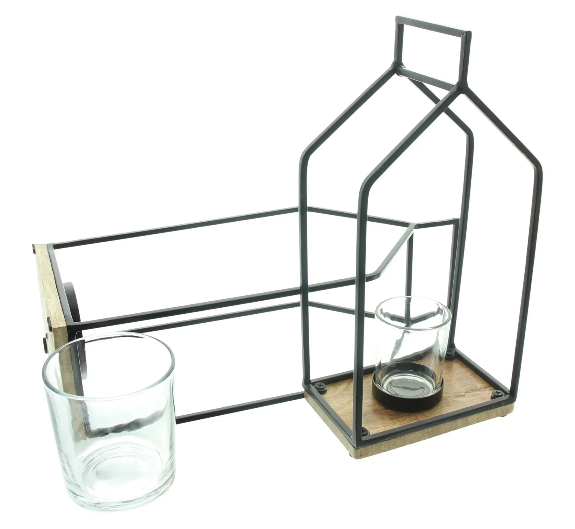 Wer hätte gedacht, dass ein Windlicht so viel Stil und Funktionalität vereinen kann? Das Windlicht „Haus“, 2er Set, besticht durch seine moderne Form und die mattschwarze Lackierung aus Metall – ein echter Blickfang. Der naturbelassene Mangoholz-Boden sorgt für einen warmen Kontrast, während der herausnehmbare Glaseinsatz Ihnen das Anzünden und Reinigen kinderleicht macht.moderne Form, mattschwarz lackiertes Metall, Boden aus naturbelassenem Mangoholz, herausnehmbarer Glaseinsatz