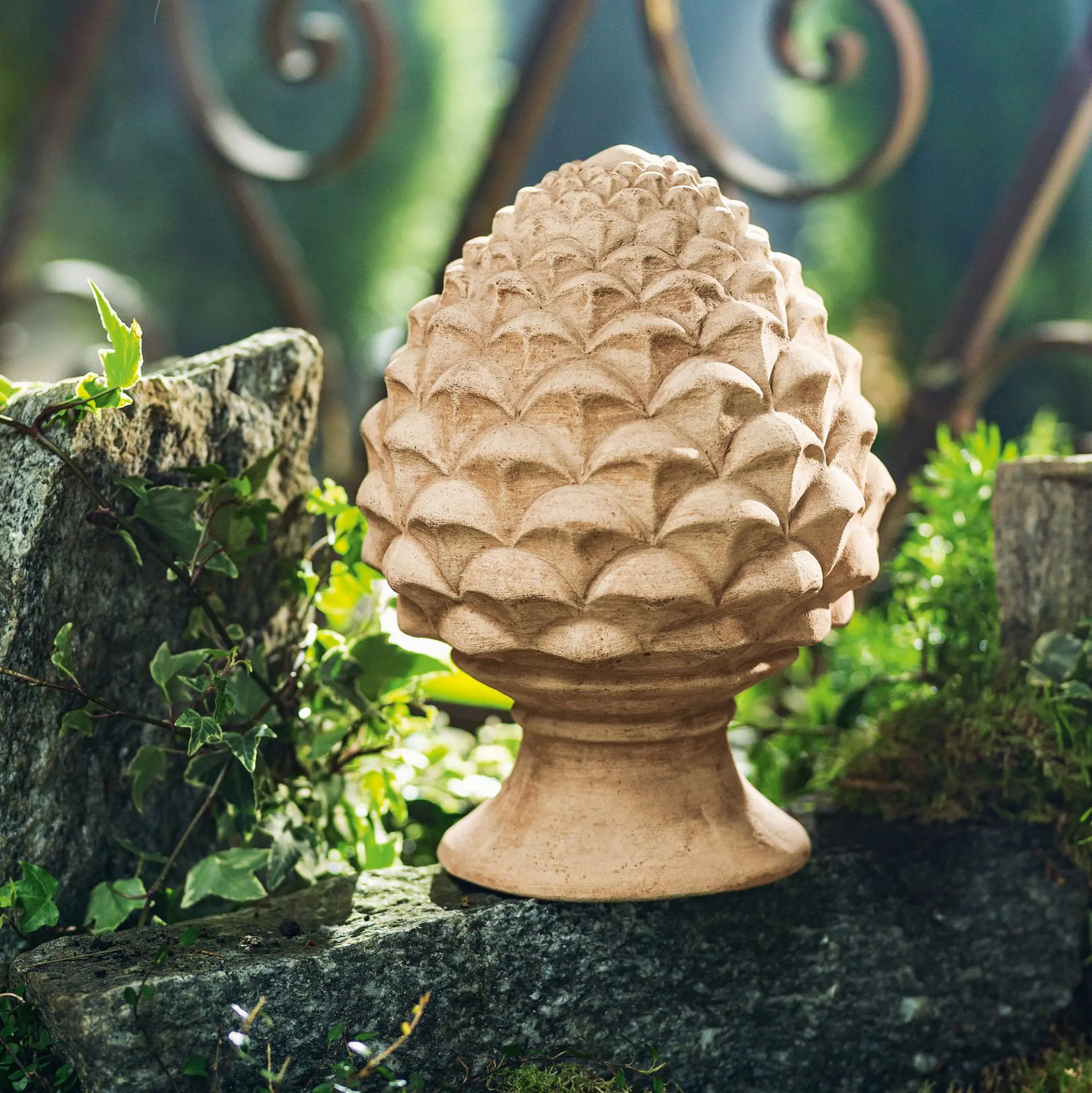 Der Zapfen "Pigna" - ein wahres Schmuckstück für Ihren Garten! Der Zapfen aus Terracotta überzeugt mit seinem schönen Naturton und der weißen Kalkung, die ihm eine elegante Note verleiht. Die schwere Qualität sorgt dafür, dass die Deko stabil und langlebig ist. Holen Sie sich mit dem Zapfen ein Stück mediterranes Flair in Ihren Garten und genießen Sie die harmonische Atmosphäre, die er schafft.mediterrane Gartendeko, Terracotta, schöner Naturton, weiß gekalkt, schwere Qualität