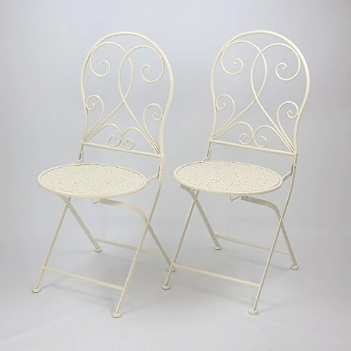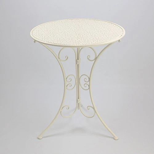 Das Bistro-Set "White Romance" ist ein wahrer Blickfang und in der romantischen Shabby-Optik filigran gearbeitet. Die cremeweiß lackierten Metallteile sind mit einem Rankendesign verziert und erwecken so den Eindruck eines ganz besonderen und gemütlichen Ambientes. Das Set besteht aus einer Tischplatte, zwei Bistrotischen und vier Stühlen.