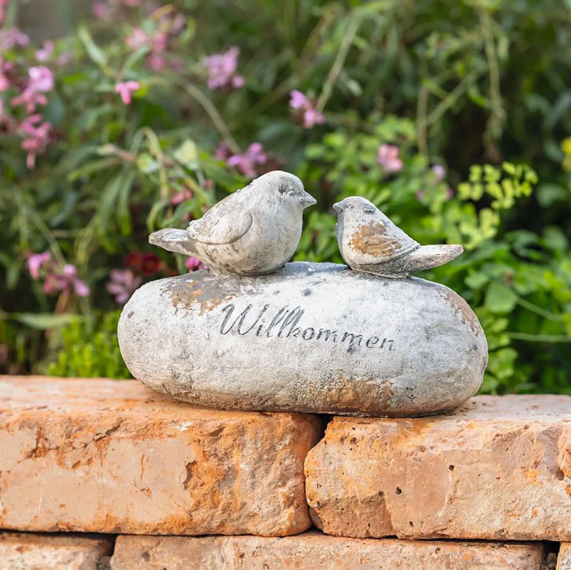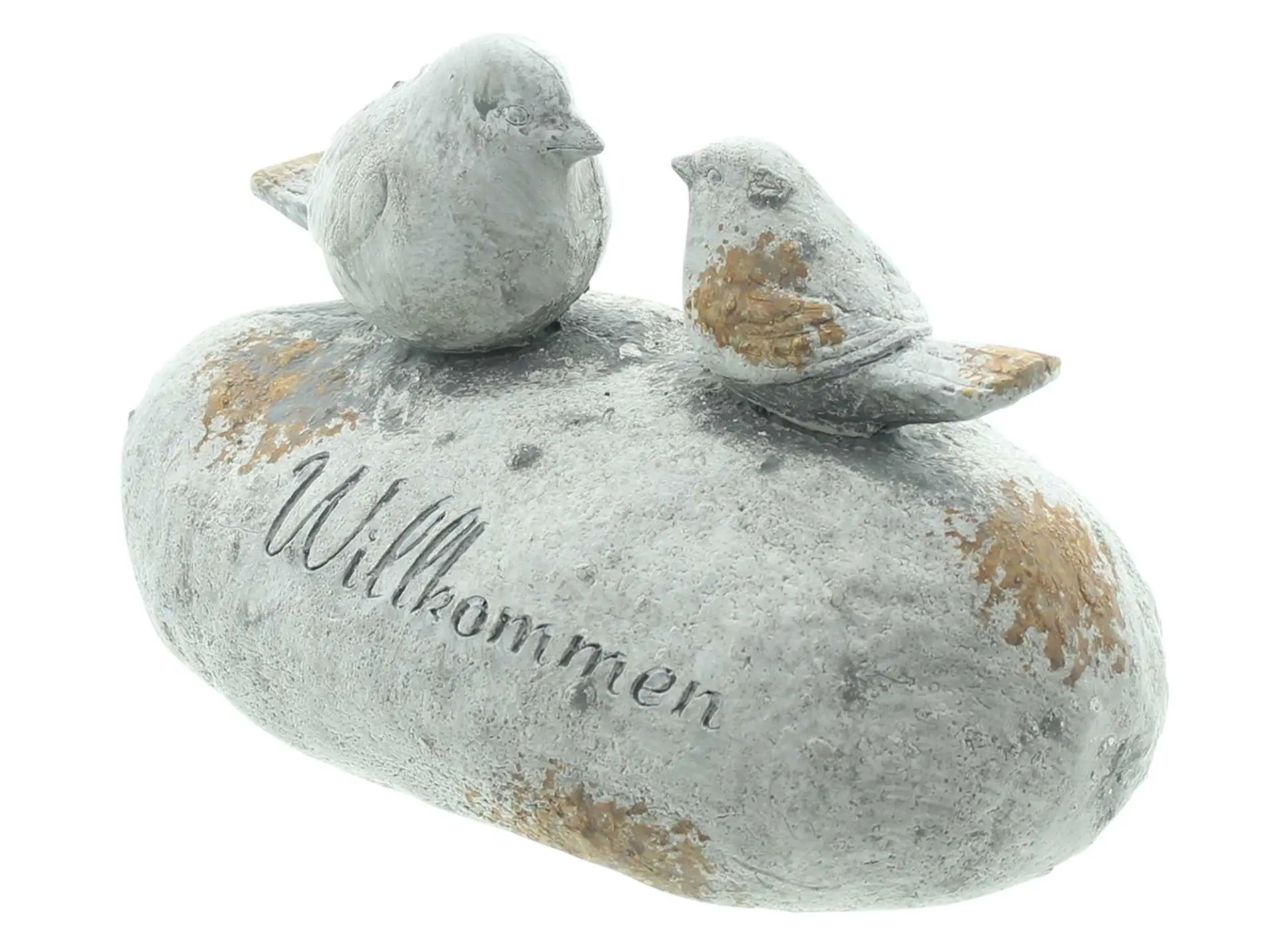 Verleihen Sie Ihrem Zuhause einen charmanten Akzent mit unserem Dekostein "Willkommen". Aus Zement gefertigt, besticht dieser schwere Stein durch seine antike Optik und die niedliche Vogeldeko. Der einladende Schriftzug sorgt für eine herzliche Atmosphäre. Ideal für den Eingangsbereich oder als stilvolle Gartenornament – dieser Dekostein ist nicht nur dekorativ, sondern auch langlebig. Machen Sie Ihr Zuhause noch einladender!Zement, schwere Qualität, antike Optik, niedliche Vogeldeko