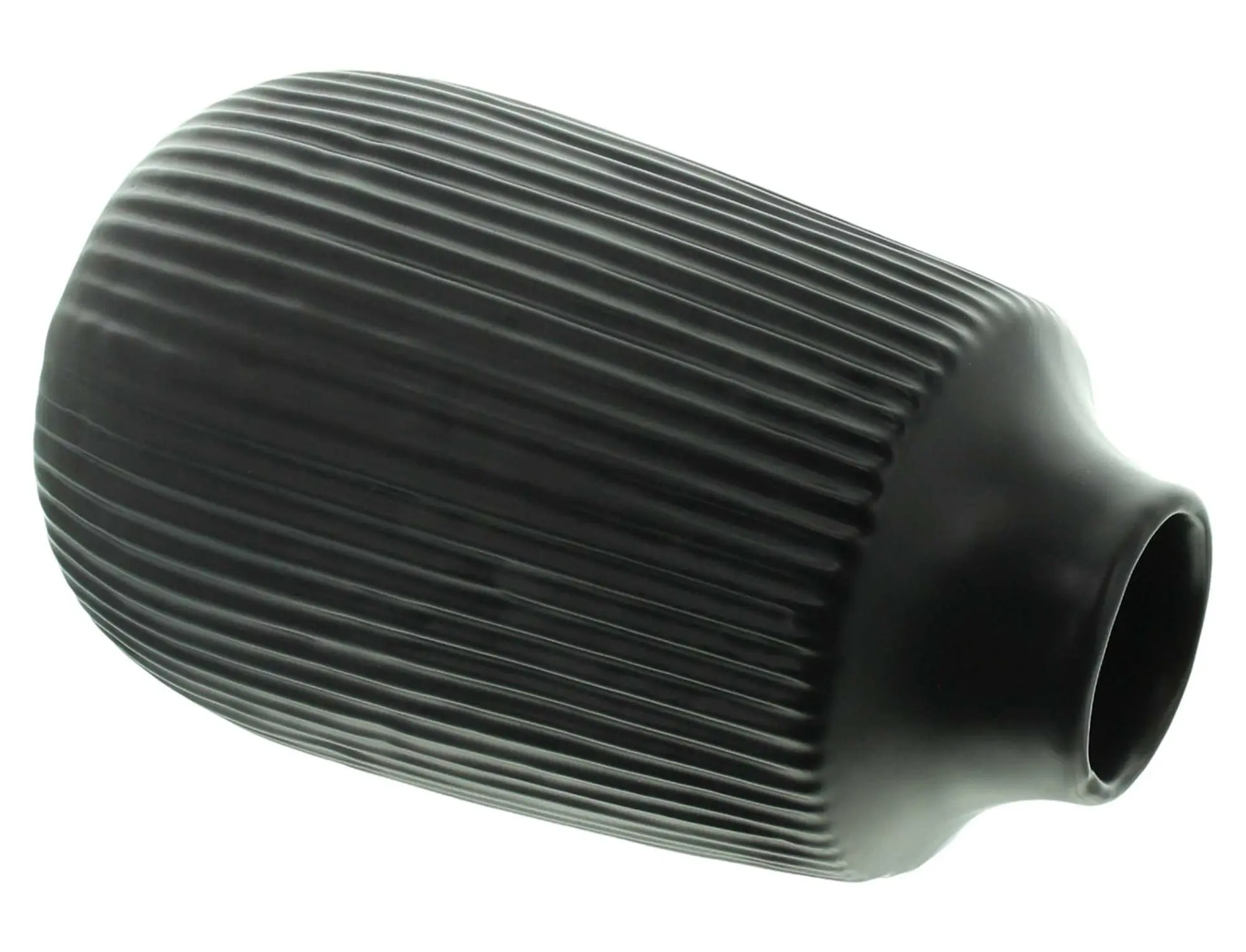 Entdecken Sie die Dekovase "Black" – ein wahres Meisterwerk aus Porzellan! In elegantem mattschwarz gehalten, verleiht sie jedem Raum einen Hauch von Stil und Raffinesse. Die besondere Rillenstruktur sorgt nicht nur für einen visuellen Blickfang, sondern auch für eine angenehme Haptik. Ob als Highlight auf dem Tisch oder als stilvolle Ergänzung im Regal – diese Vase ist vielseitig einsetzbar und zieht alle Blicke auf sich.Porzellan, mattschwarz, Rillenstruktur
