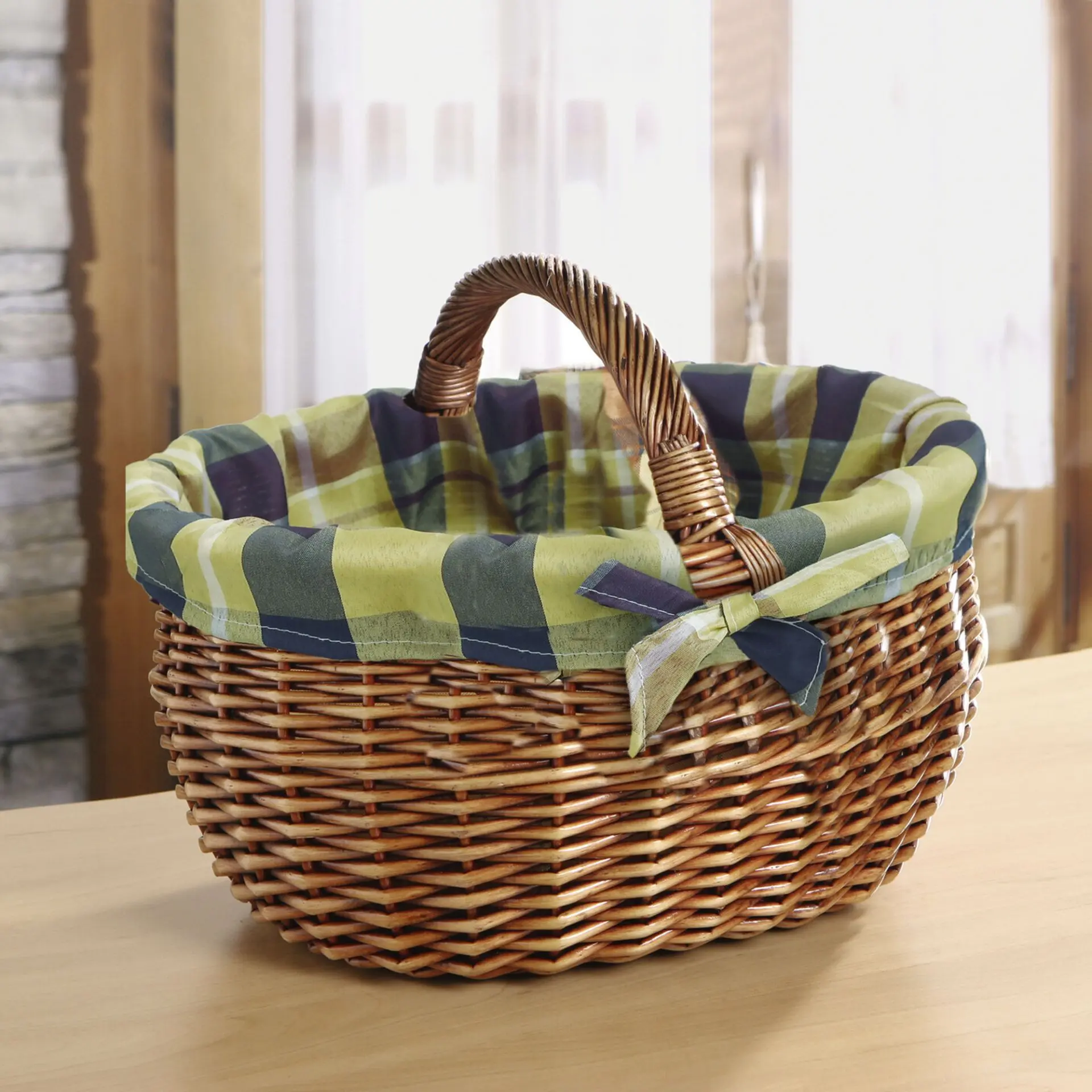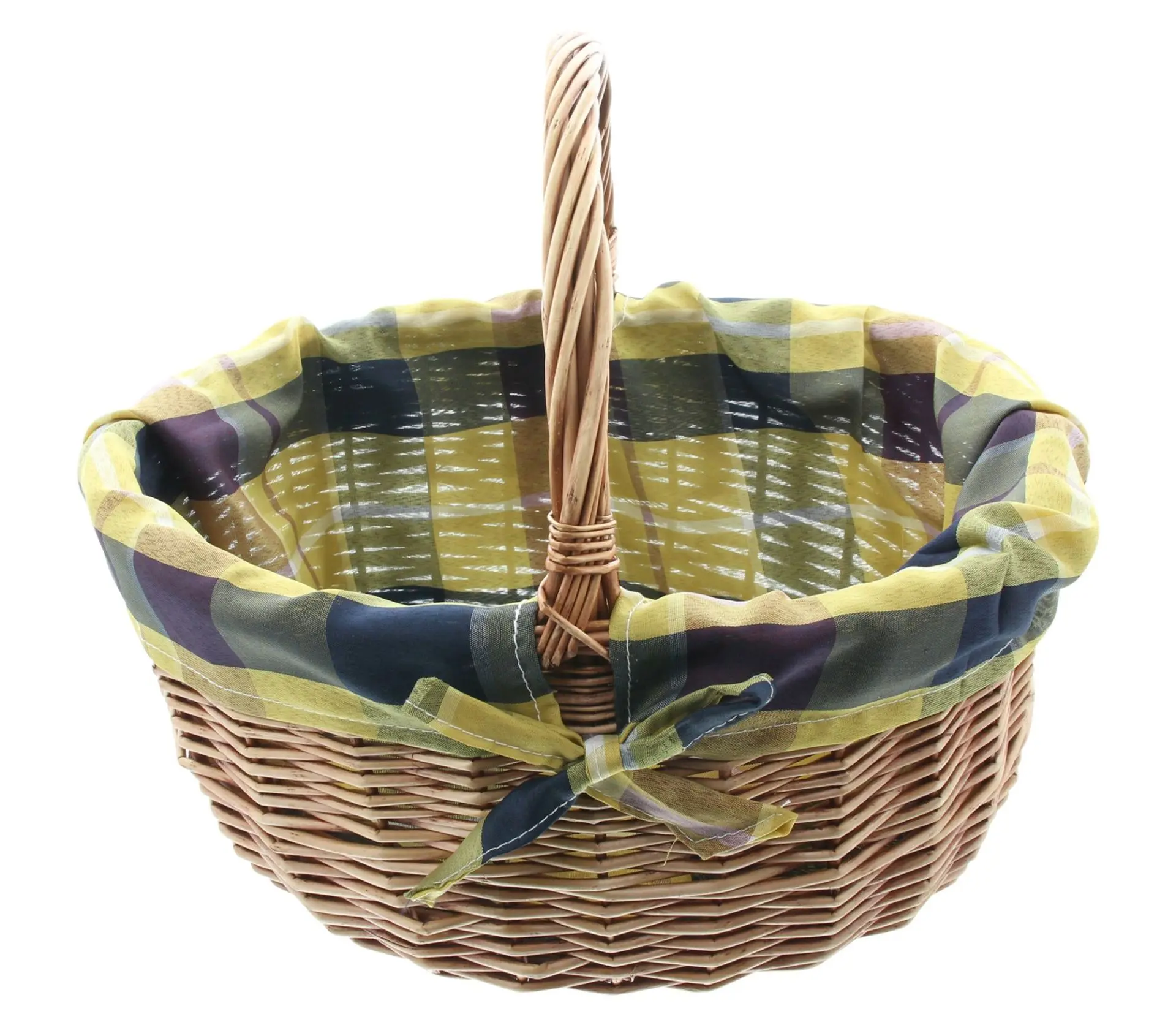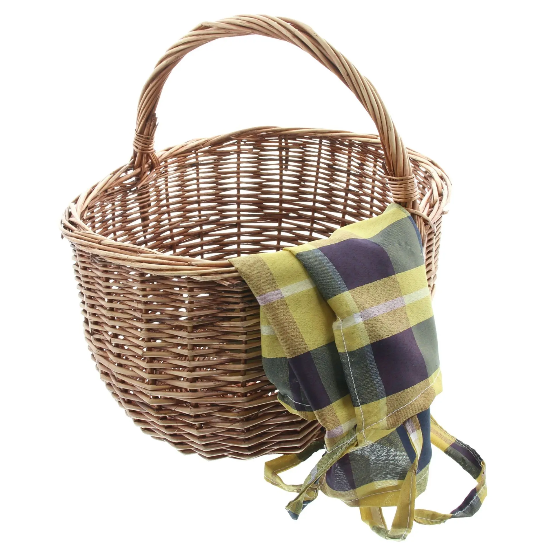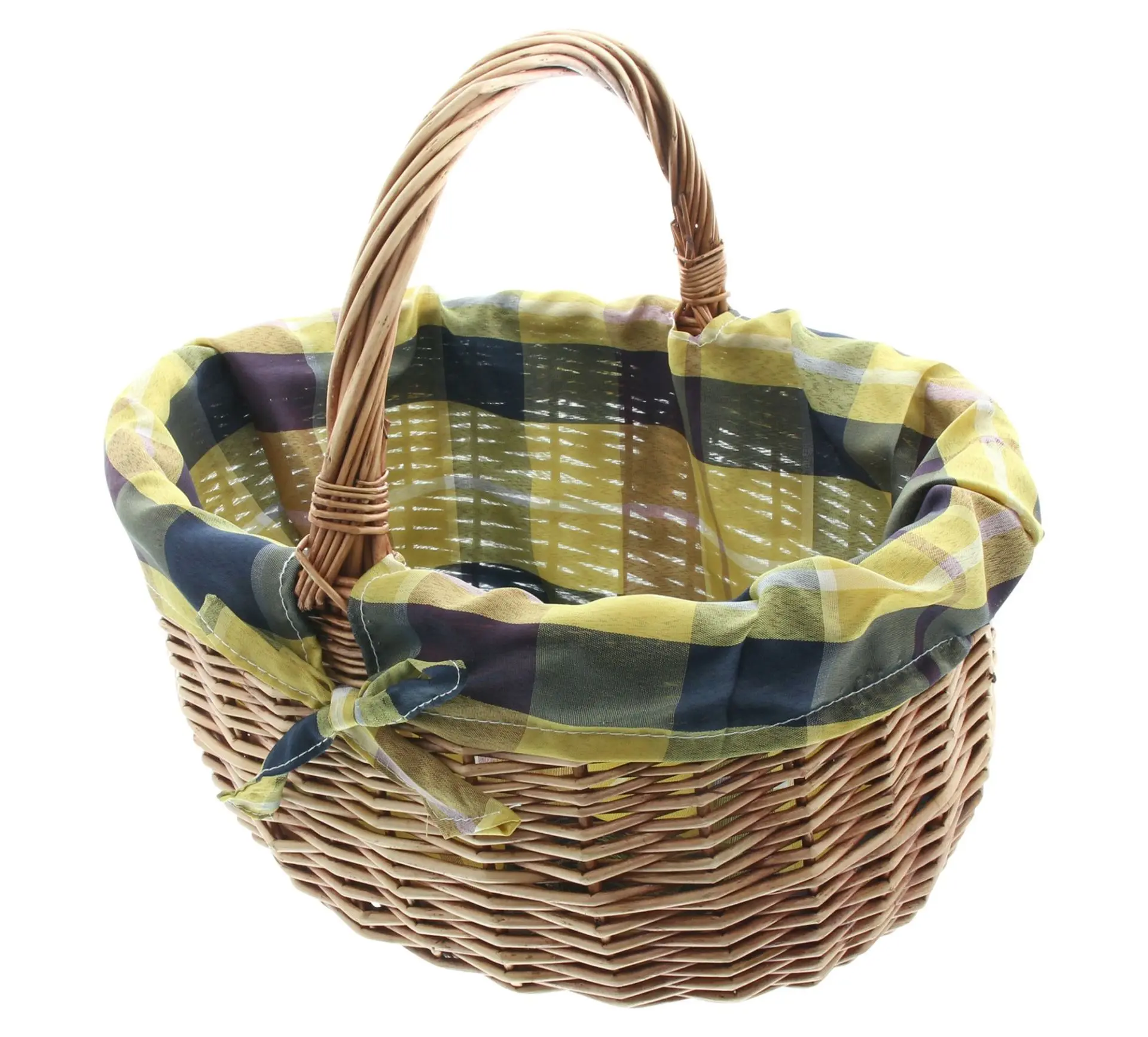Vollweide, braun gebeizt, natur lackiert, Stoffeinsatz in bunten Karotönen