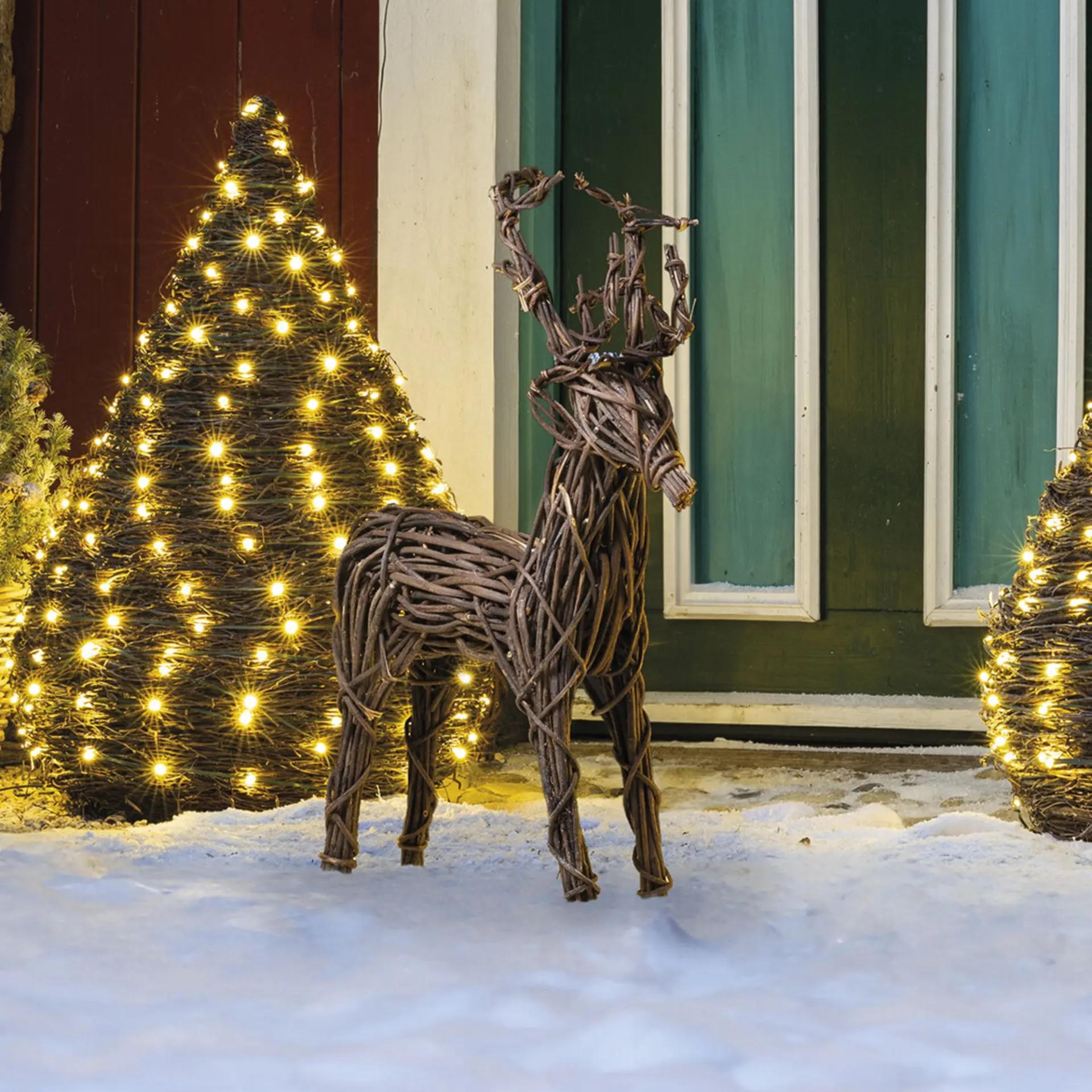 rustikale Weihnachtsdeko, Rebenzweige auf Metallrahmen geflochten