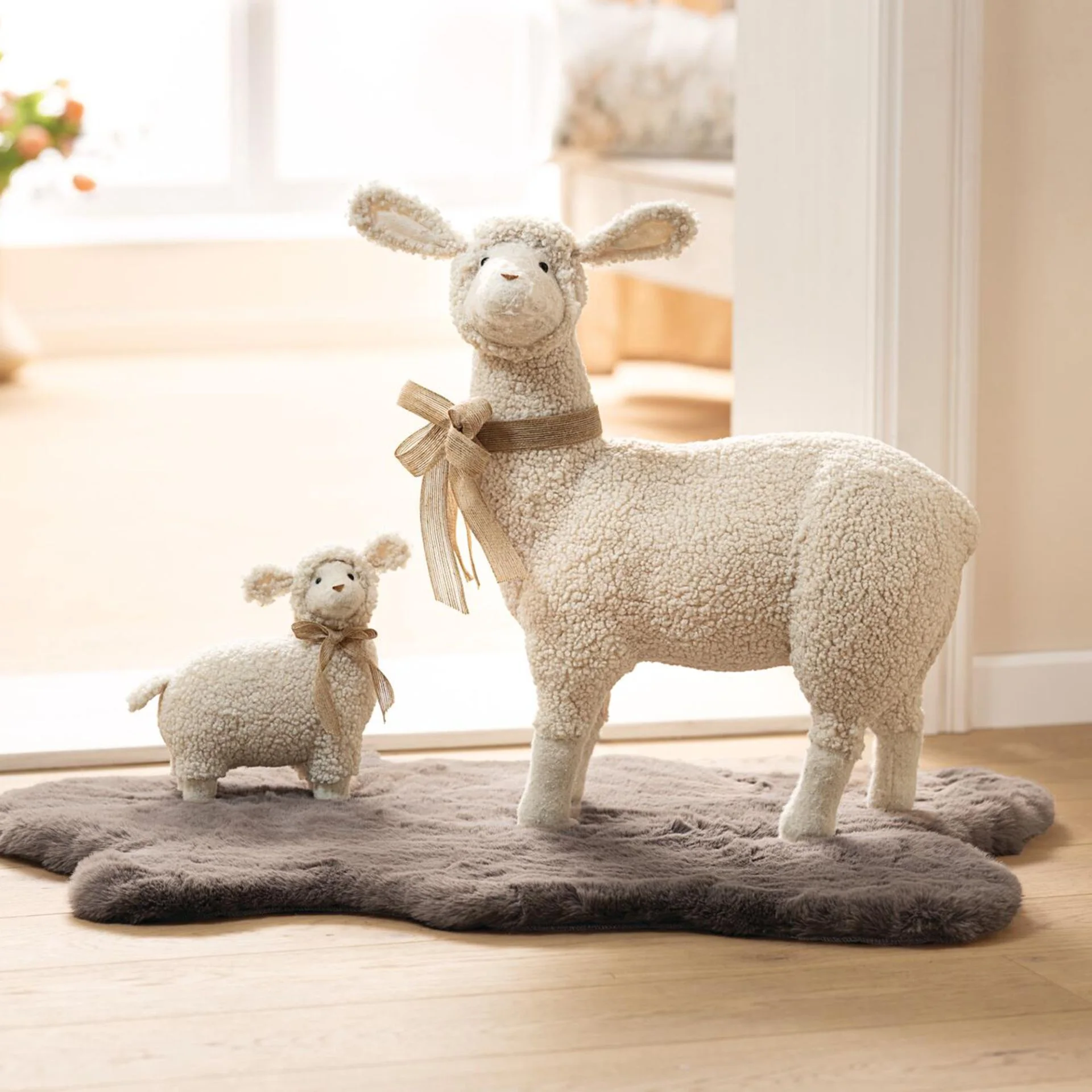 Entdecken Sie die charmante Figur „Schaf“, groß – Ihre neue süße Plüschdeko mit weichem Teddyfell. Verziert mit einer rustikalen Juteschleife und liebevoll gestalteten schwarzen Kunststoffaugen, bringt dieses Schaf garantiert ein Lächeln in Ihr Zuhause. Perfekt für alle, die auf niedliche Details mit Stil setzen!