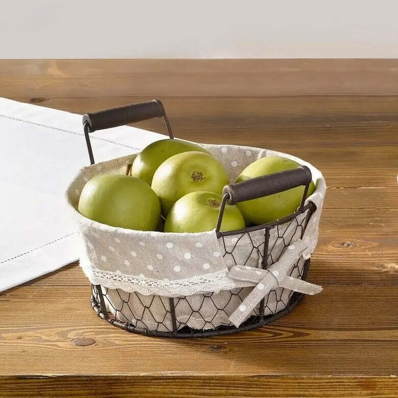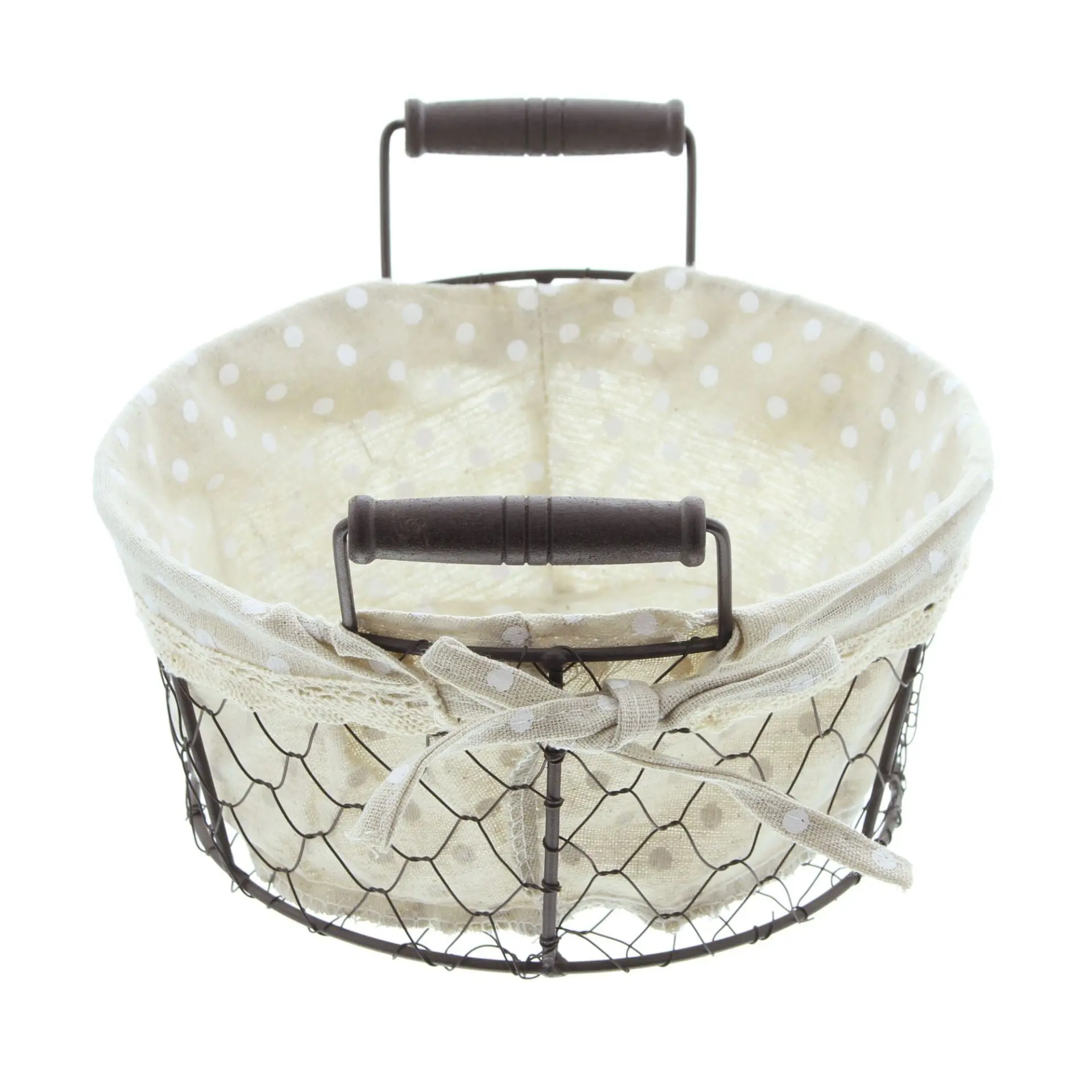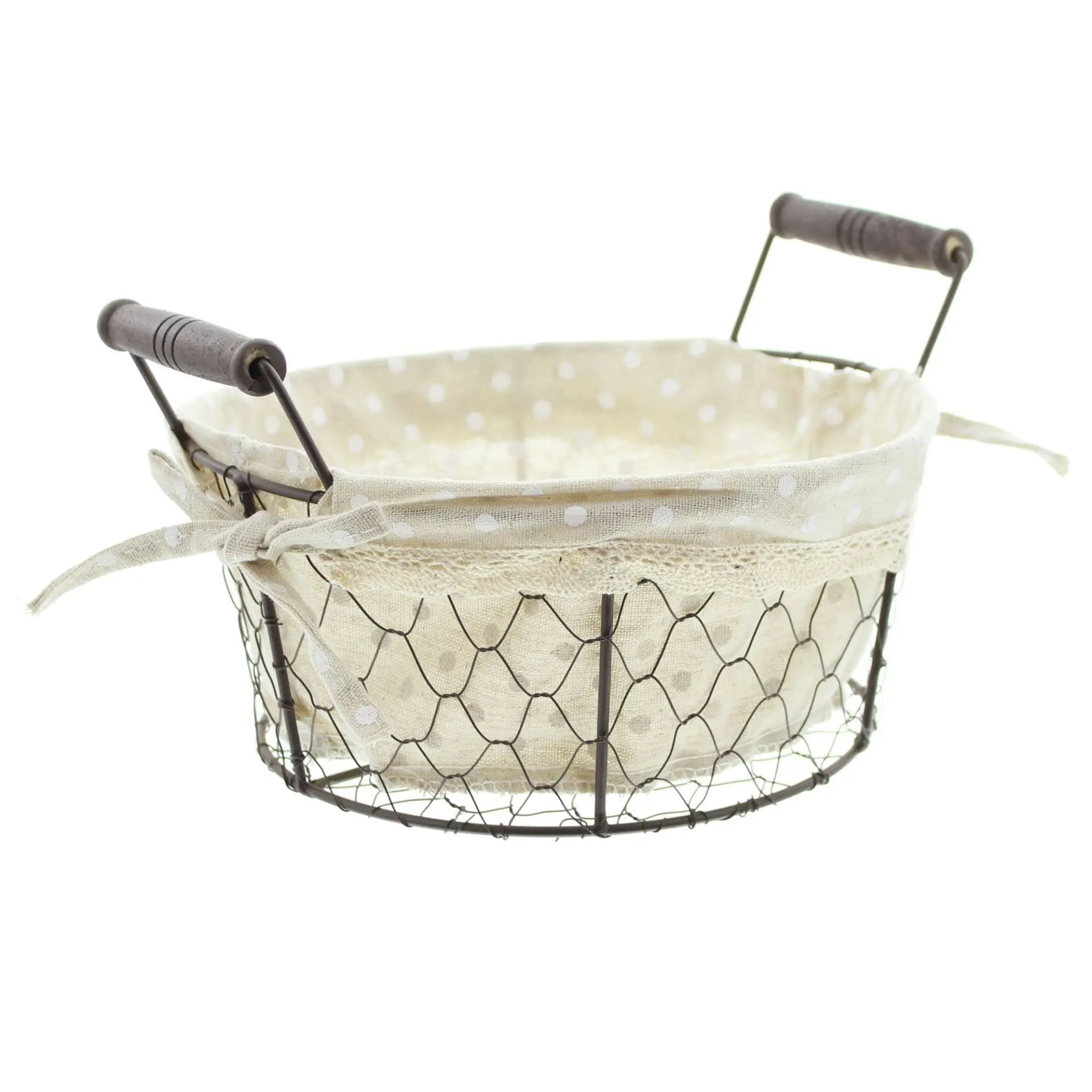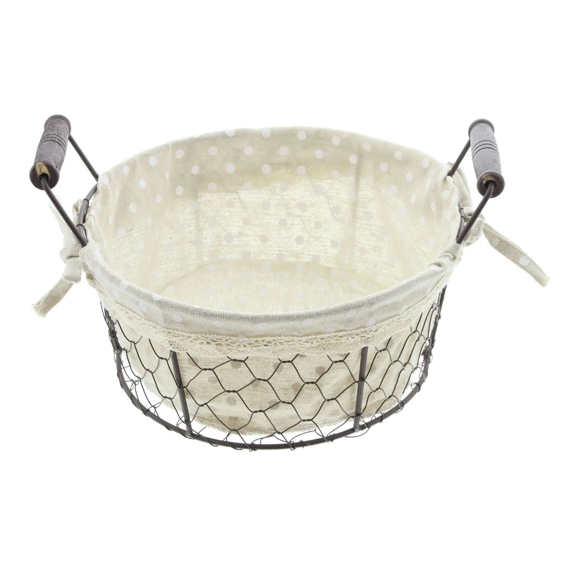 herausnehmbarer Stoffeinsatz mit modischem Pünktchenprint und aufwändiger Häkelborte, Metallrahmen mit Drahtgeflecht, seitliche Holzgriffe