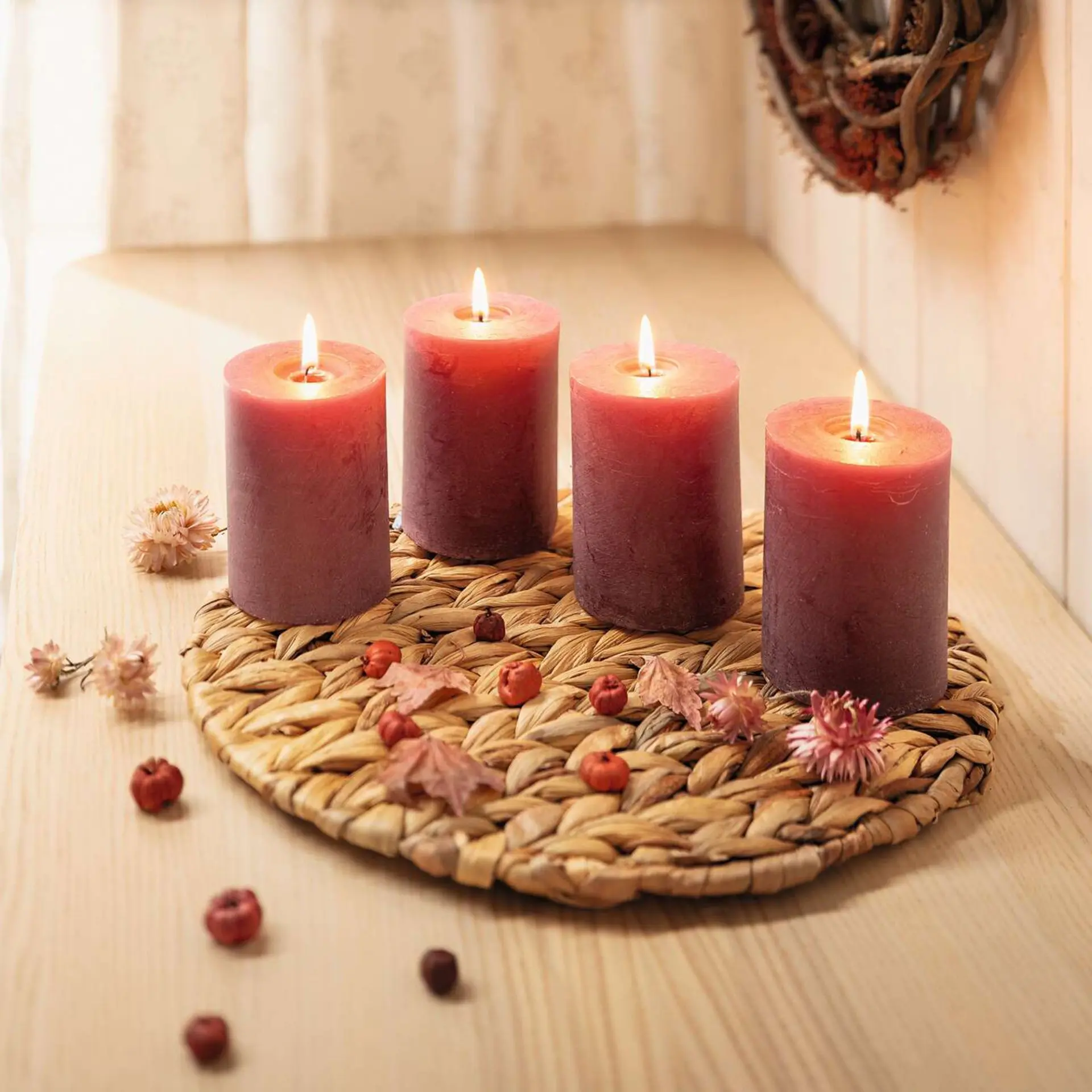 Entdecken Sie das 4er Set der Kerze "Berry" in einem kräftigen Beerenton. Die leicht strukturierte Oberfläche sorgt für ein elegantes Erscheinungsbild und schafft eine warme Atmosphäre in Ihrem Zuhause. Ideal für stilvolle Akzente und entspannte Stunden.