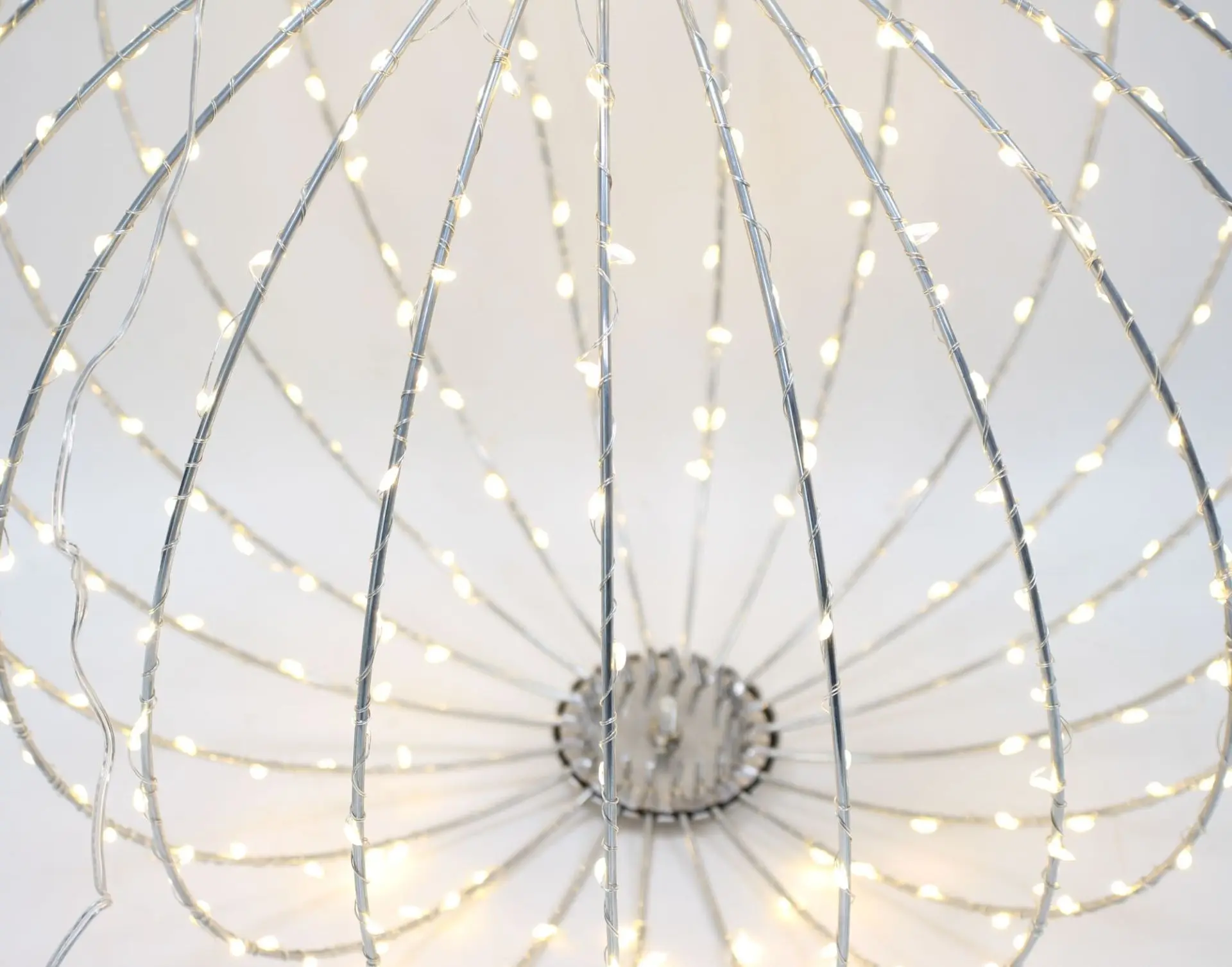 Unsere LED-Kugel „Shine“ ist ein stilvolles Highlight für Ihren Garten oder Ihre Terrasse. Die Kugel besteht aus silber lackiertem Metall und wird durch ca. 380 warmweiß leuchtende LEDs erhellt. Damit Sie mehr Freude an der Beleuchtung haben, verfügt die LED-Kugel über einen Trafo mit Timerfunktion, so dass Sie die Leuchtdauer ganz nach Ihren Wünschen einstellen können. Mit dem ansprechenden Design der LED-Kugel „Shine“ bringen Sie neuen Glanz in Ihren Garten!silber lackiertes Metall, ca. 380 warmweiß leuchtende LEDs, Trafo mit Timerfunktion