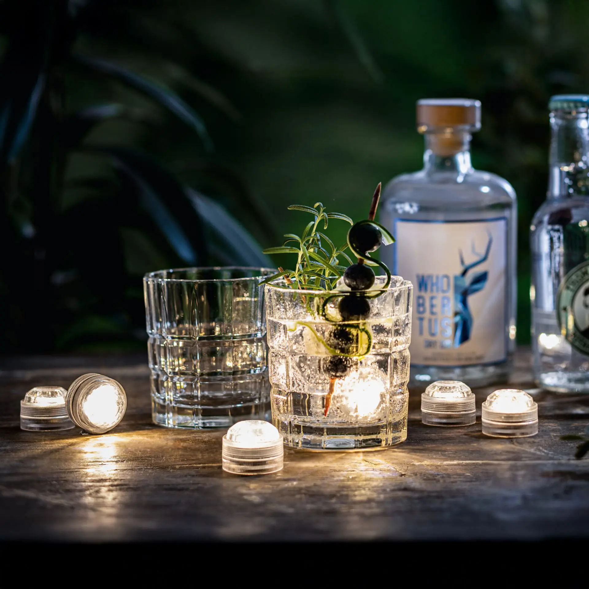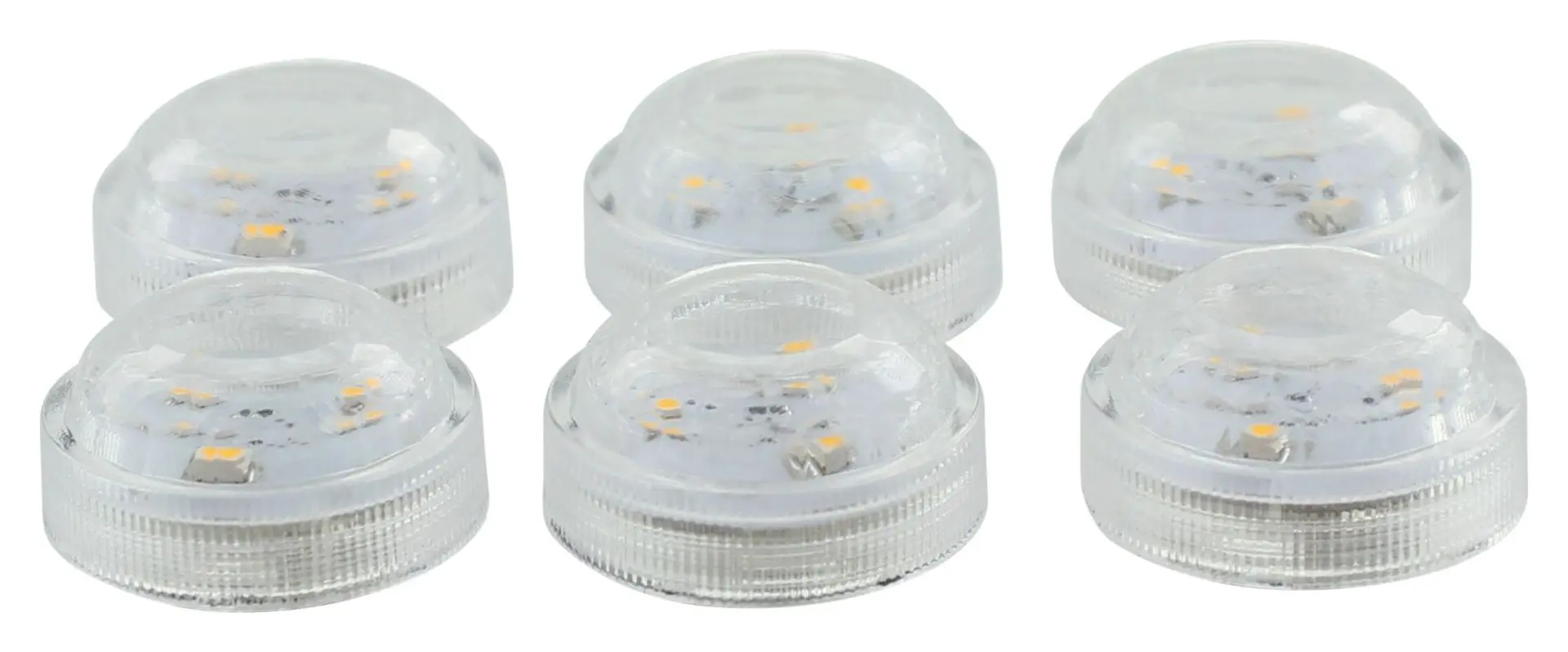warmweiß leuchtende LEDs, An-/Aus-Drehschalter, batteriebetrieben, auch im Wasser einsetzbar