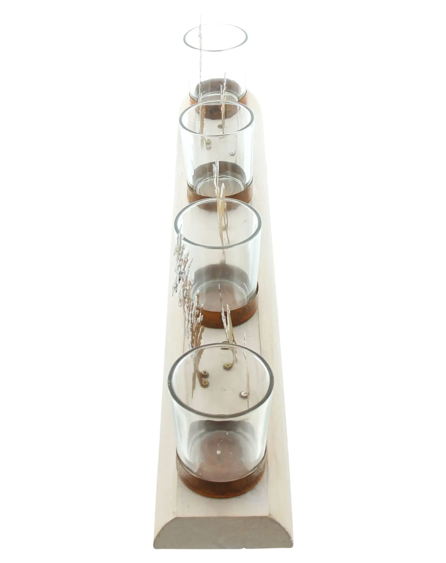 Maße: 48 x 8 x 15 cm, Glas Ø 5 x 7 cm, ohne Teelichter