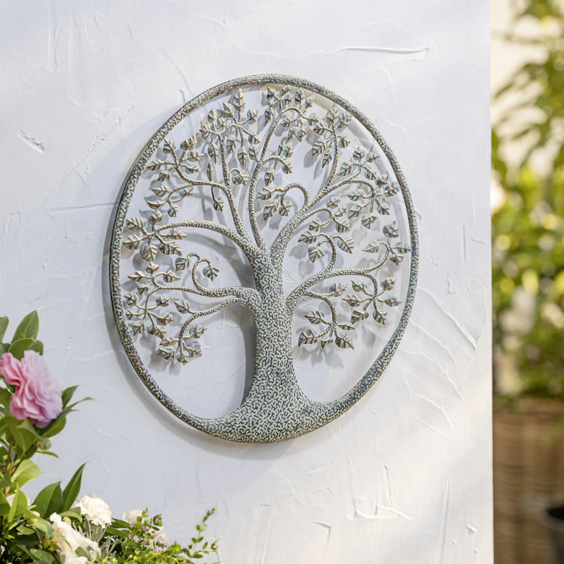 mintgrün lackierte Wanddeko mit edler Kupferpatina