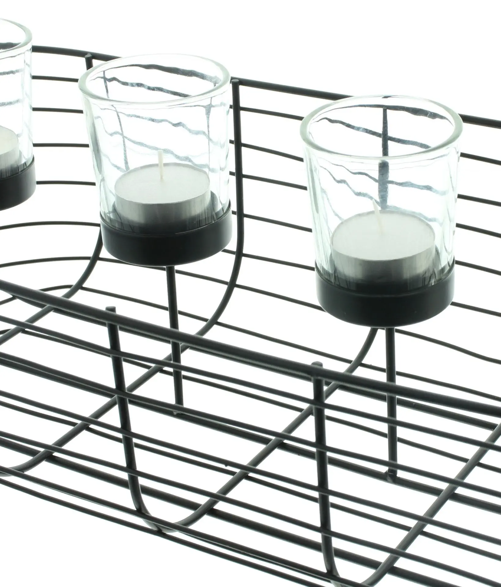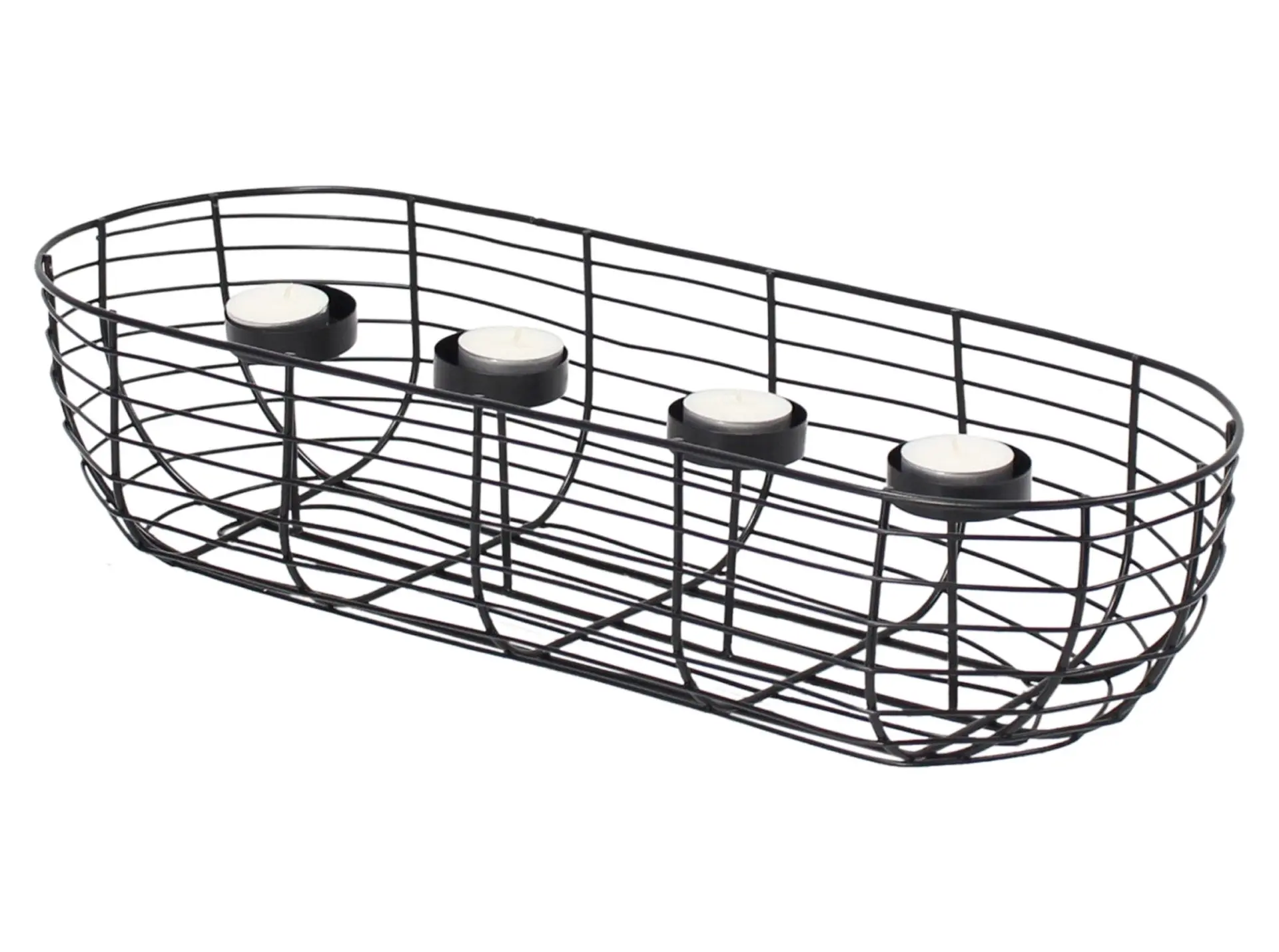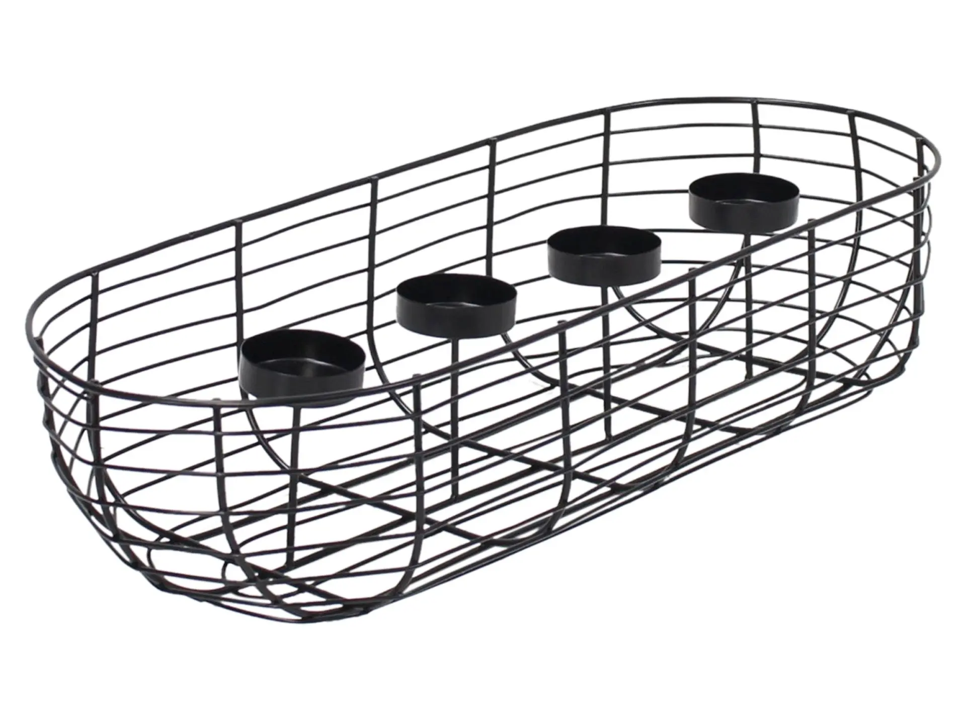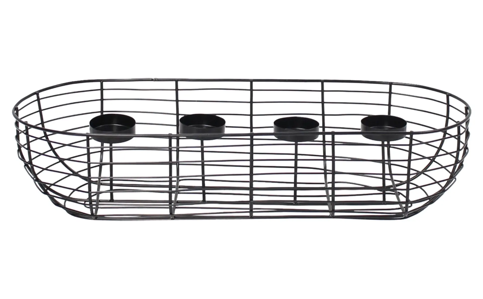 Setzen Sie stilvolle Akzente in Ihrem Zuhause mit dem Kerzenhalter „Black“. Das mattschwarz lackierte Metall verleiht ihm zeitlose Eleganz, während die vier stabilen Kerzenschälchen für sicheren Halt sorgen. Der großzügige Korb bietet vielfältige Dekorationsmöglichkeiten und schafft eine harmonische Stimmung in jedem Raum. Ein perfektes Accessoire für anspruchsvolle Dekorateure.mattschwarz lackiertes Metall, 4 stabile Kerzenschälchen, großer Korb, ideal zum Dekorieren