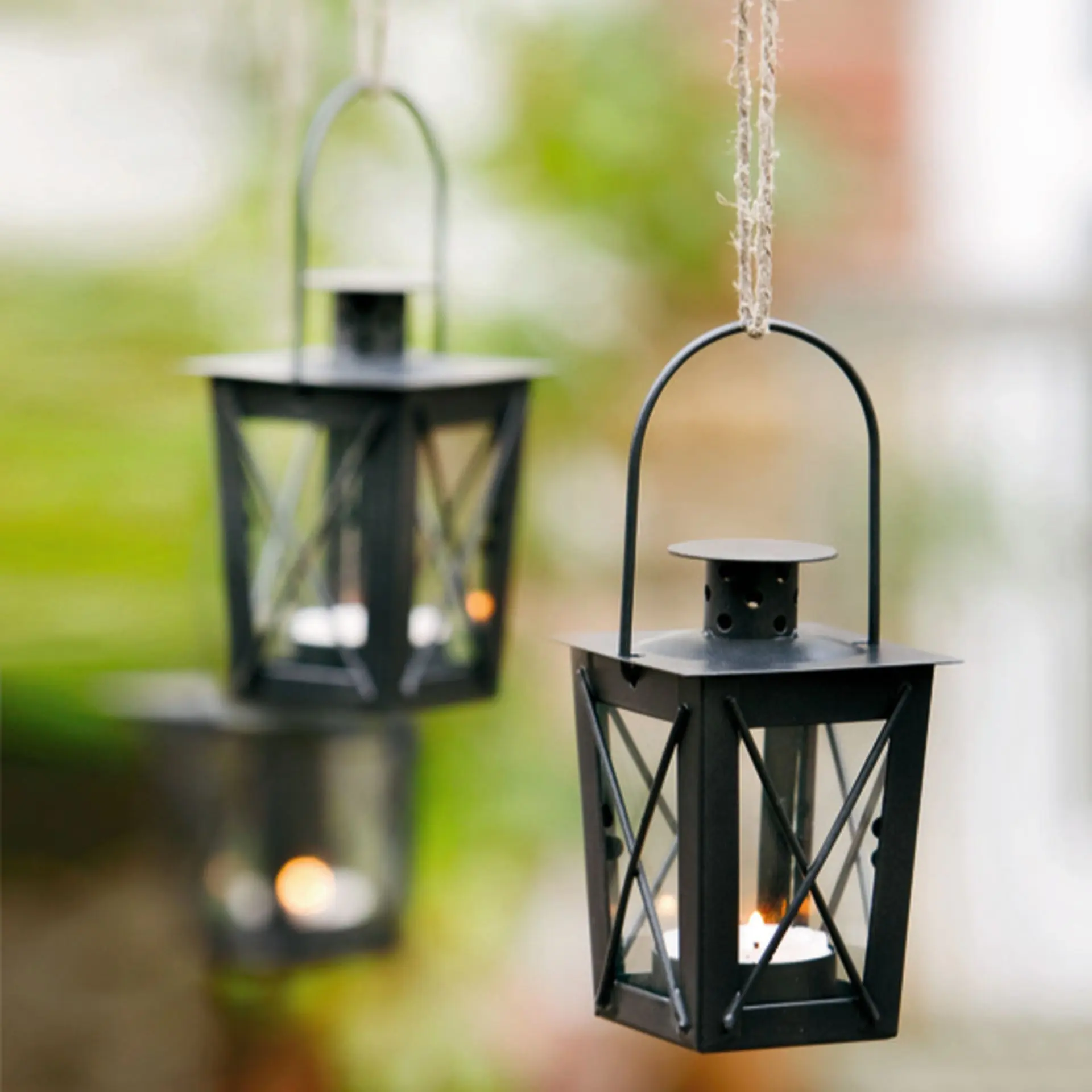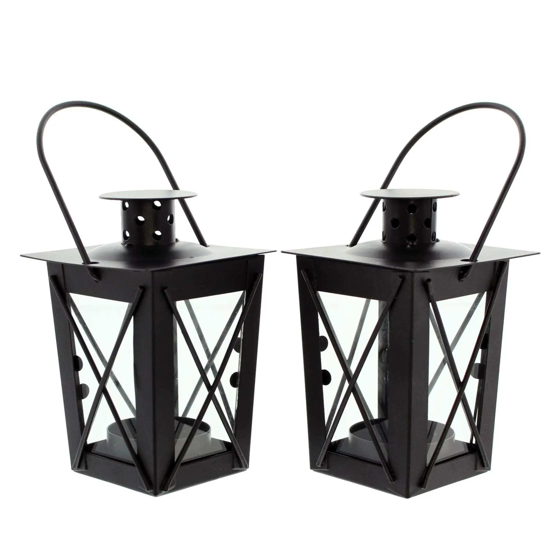 Mini Laterne 2er Set 7 x 7 x 12 cm Teelichthalter Metall schwarz lackiert mit Glaseinsätzen abnehmbarem Deckel klassisches Design