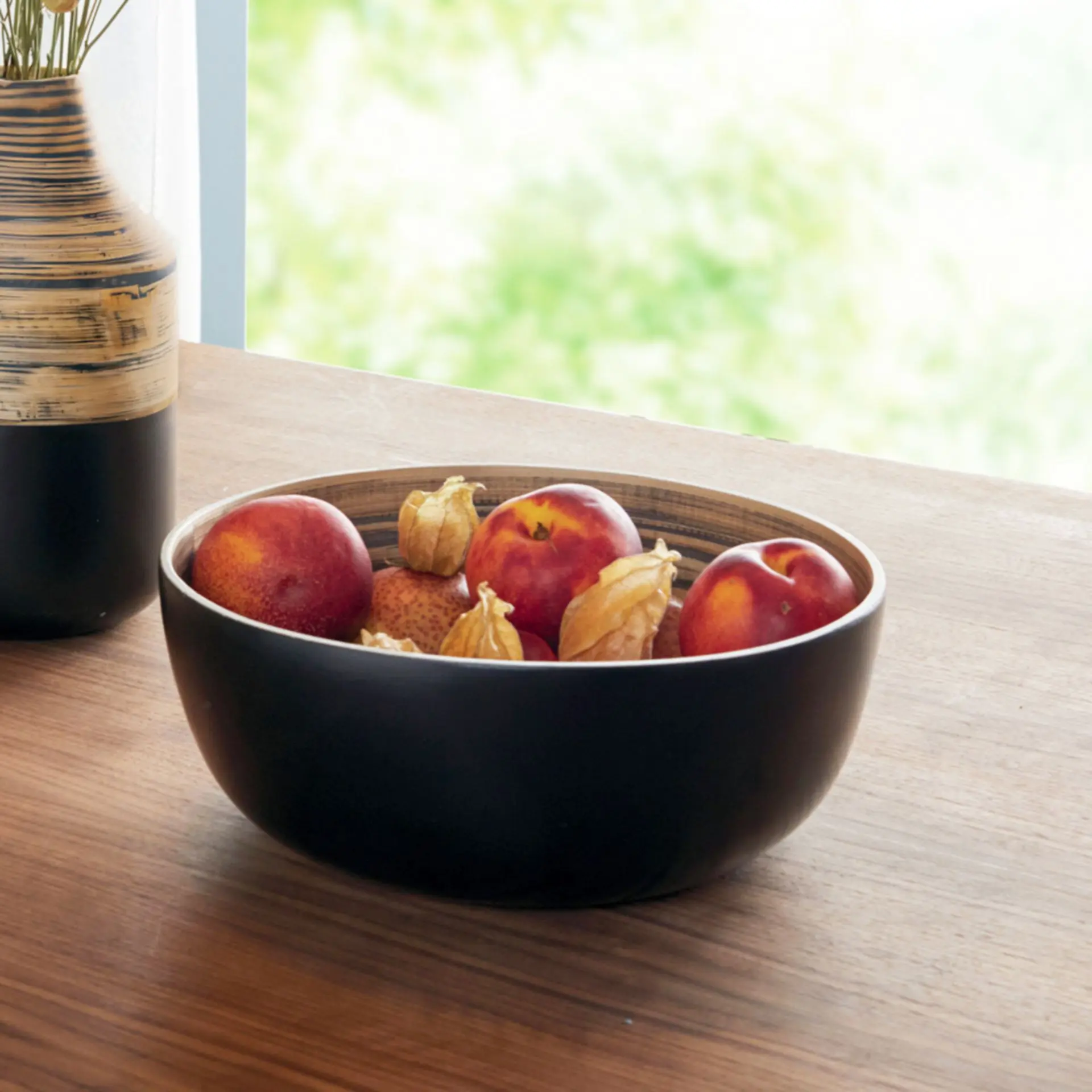 Entdecken Sie die elegante Schale "Black Bamboo" – eine dekorative Servierschale aus Bambus, kunstvoll in schwarz/natur lackiert. Diese stilvolle Schale vereint Funktionalität und Ästhetik und eignet sich perfekt für jede Gelegenheit. Verleihen Sie Ihrem Tisch mit der Schale "Black Bamboo" einen Hauch von zeitloser Eleganz und setzen Sie Ihre Speisen gekonnt in Szene. Ideal für Snacks, Obst oder als dekoratives Element – ein Must-Have für jeden Haushalt.dekorative Servierschale aus Bambus, schwarz/natur lackiert