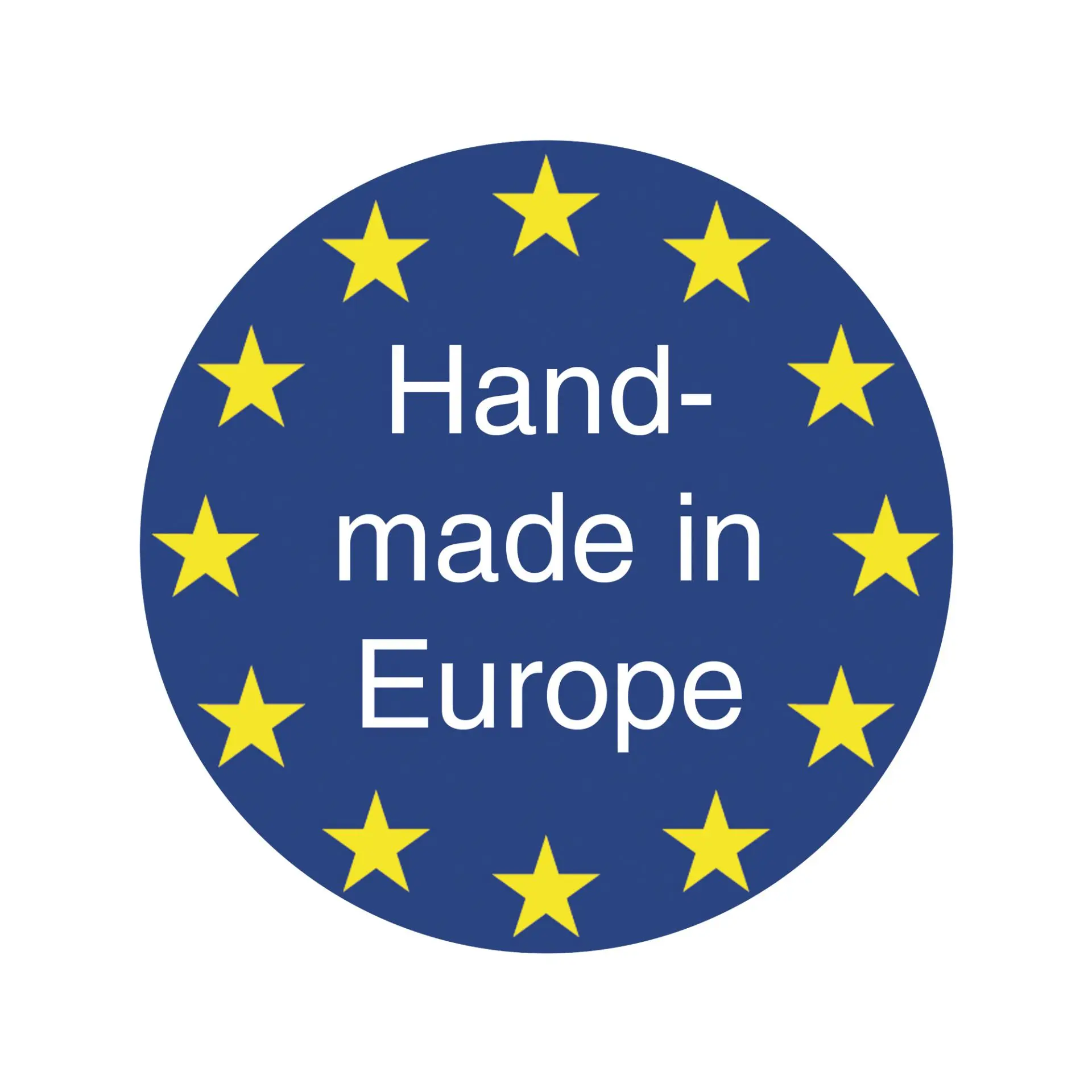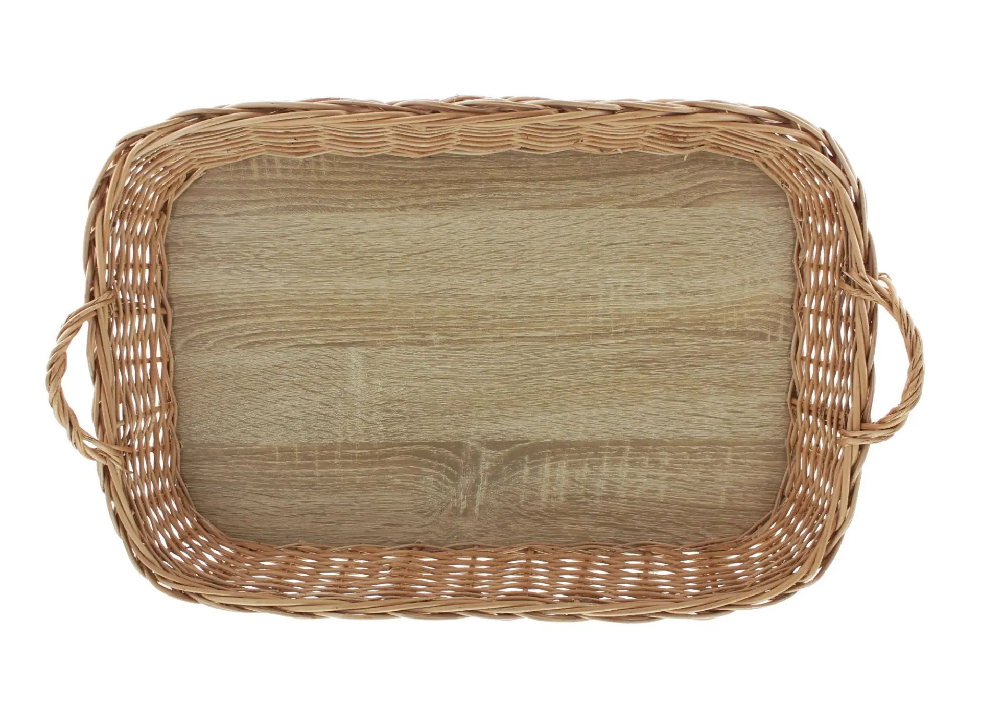 dekorativ geflochtener Zopfrand, seitliche Griffe, holzgemaserte Pressspanplatte, Vollweide in Naturton, handgeflochten in Europa