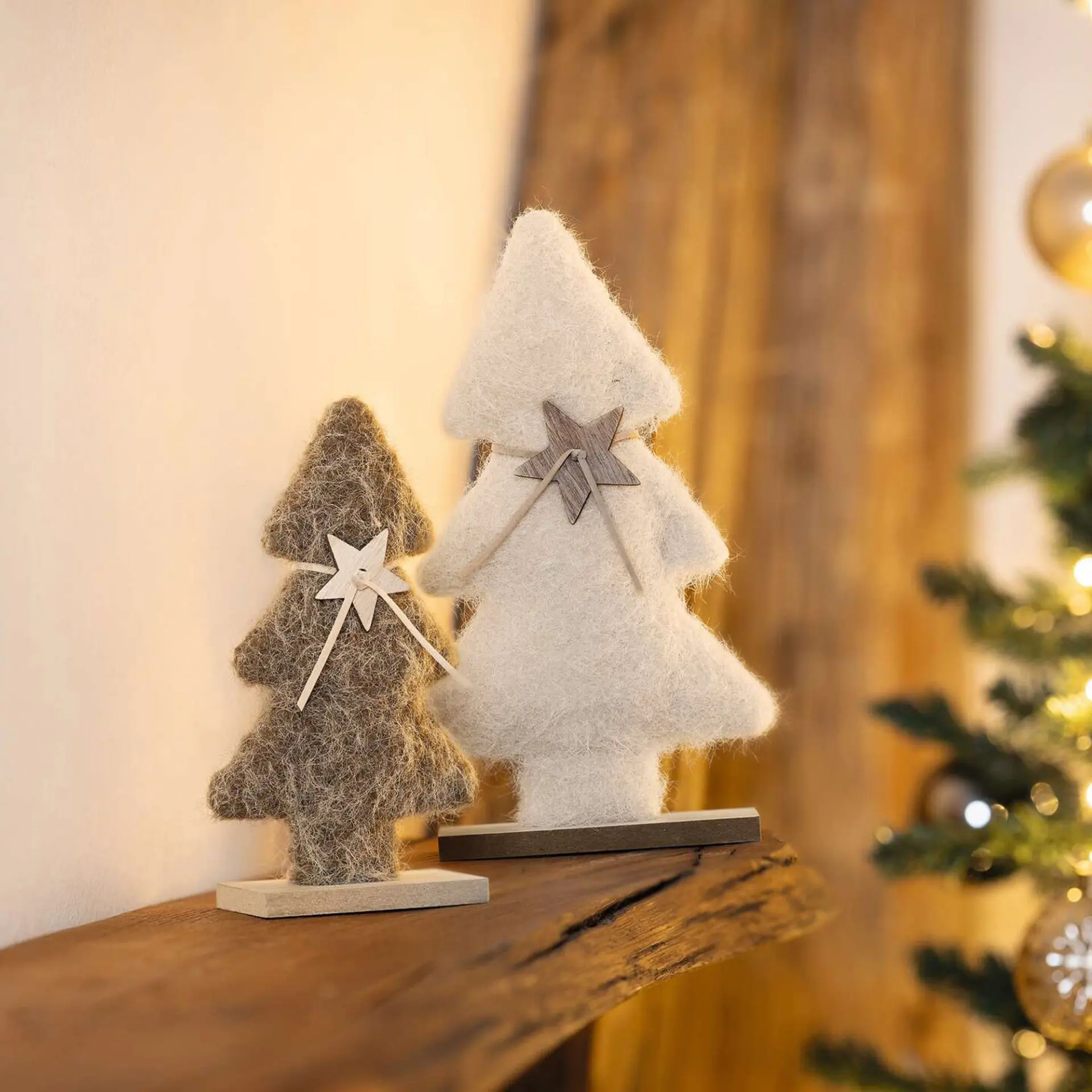 Bringen Sie festliche Gemütlichkeit in Ihr Zuhause mit dem 2er Set Tanne „Beige & Braun“. Flauschig weiche Weihnachtsdeko aus Polyester trifft hier auf stabile MDF-Elemente in Stern und Fuß – für Standfestigkeit. Abgerundet wird das Ensemble durch das Kunstlederbändchen, das für eine schöne Optik sorgt.flauschig weiche Weihnachtsdeko aus Polyester, Stern aus MDF, Kunstlederbändchen