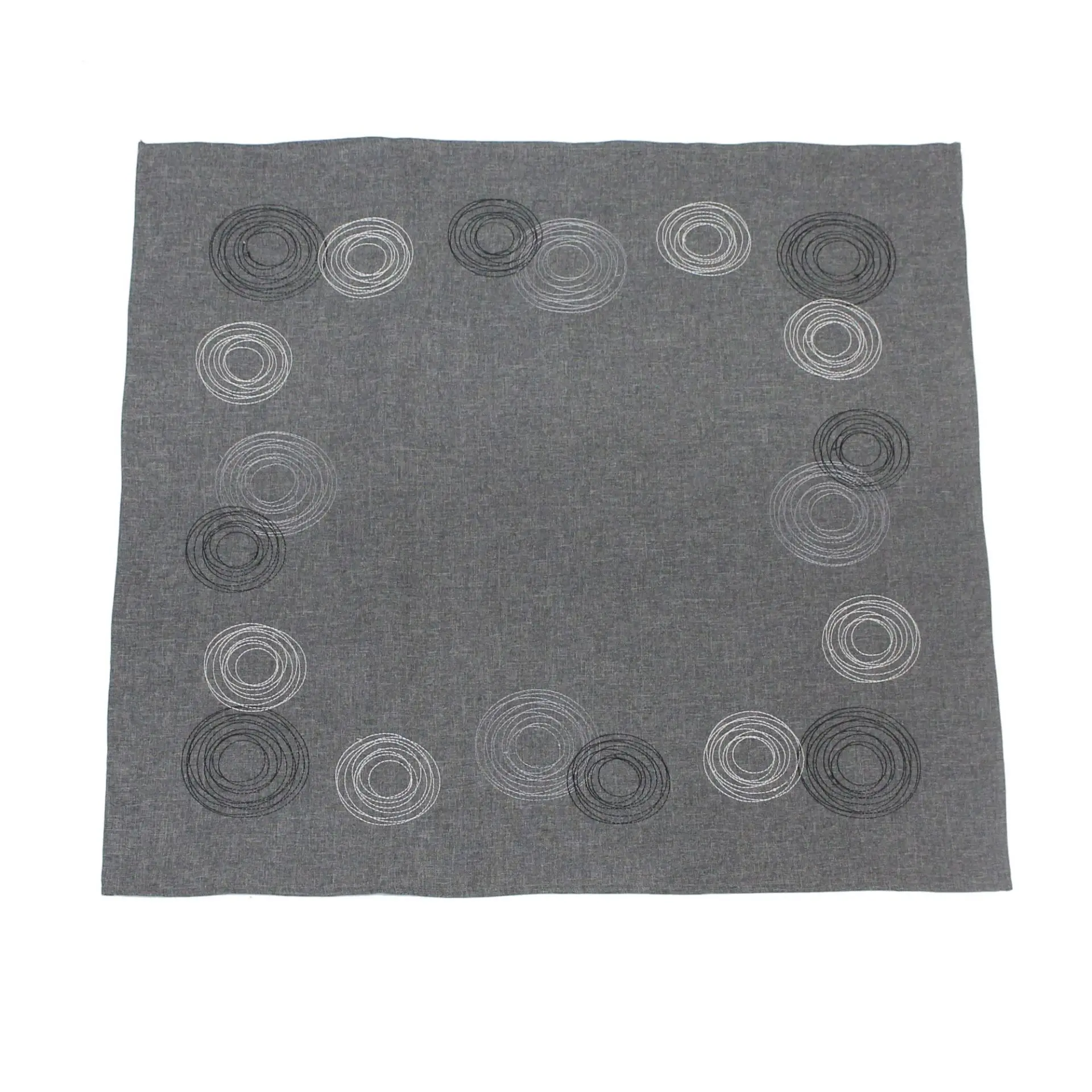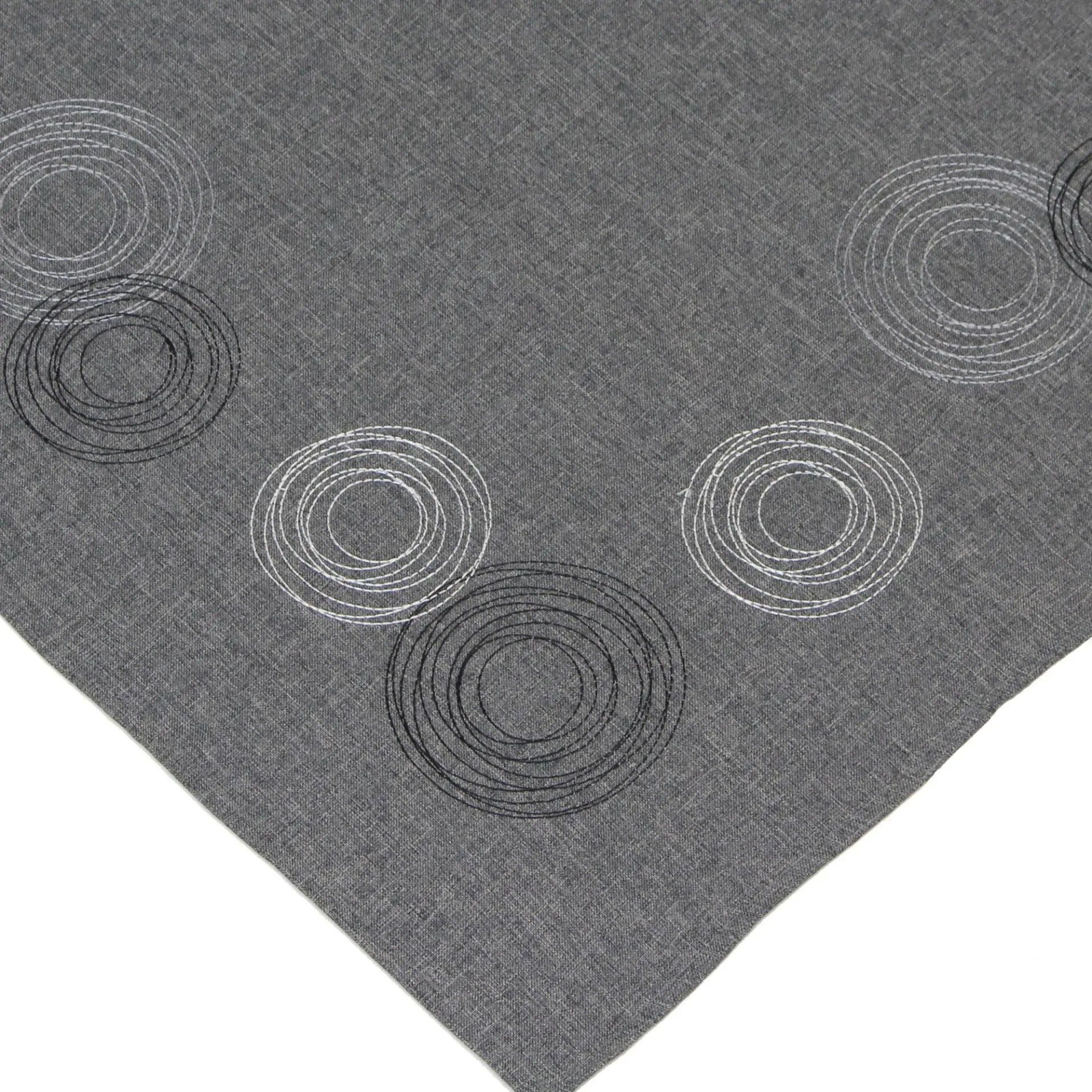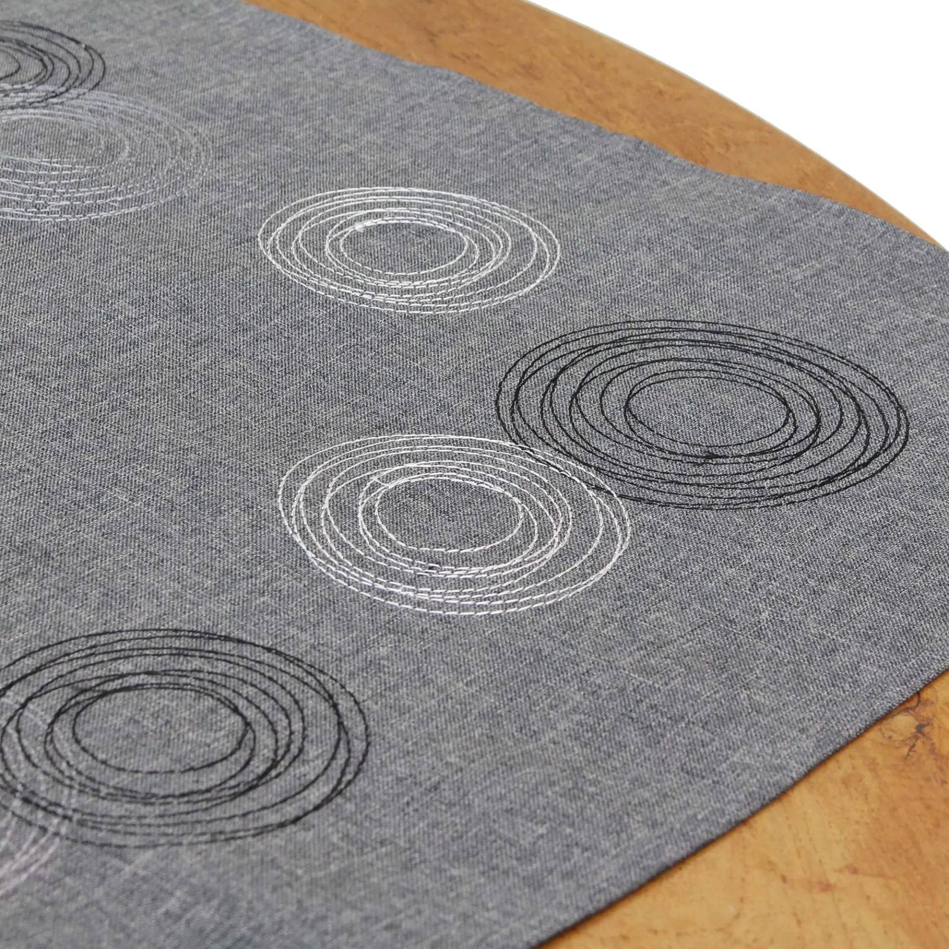 puristischer Grundstoff in zeitlosen Grautönen meliert, aufwändig bestickt mit Kreismotiven aus seidig glänzendem Garn in Weiß, Grau und Schwarz, 100% Polyester