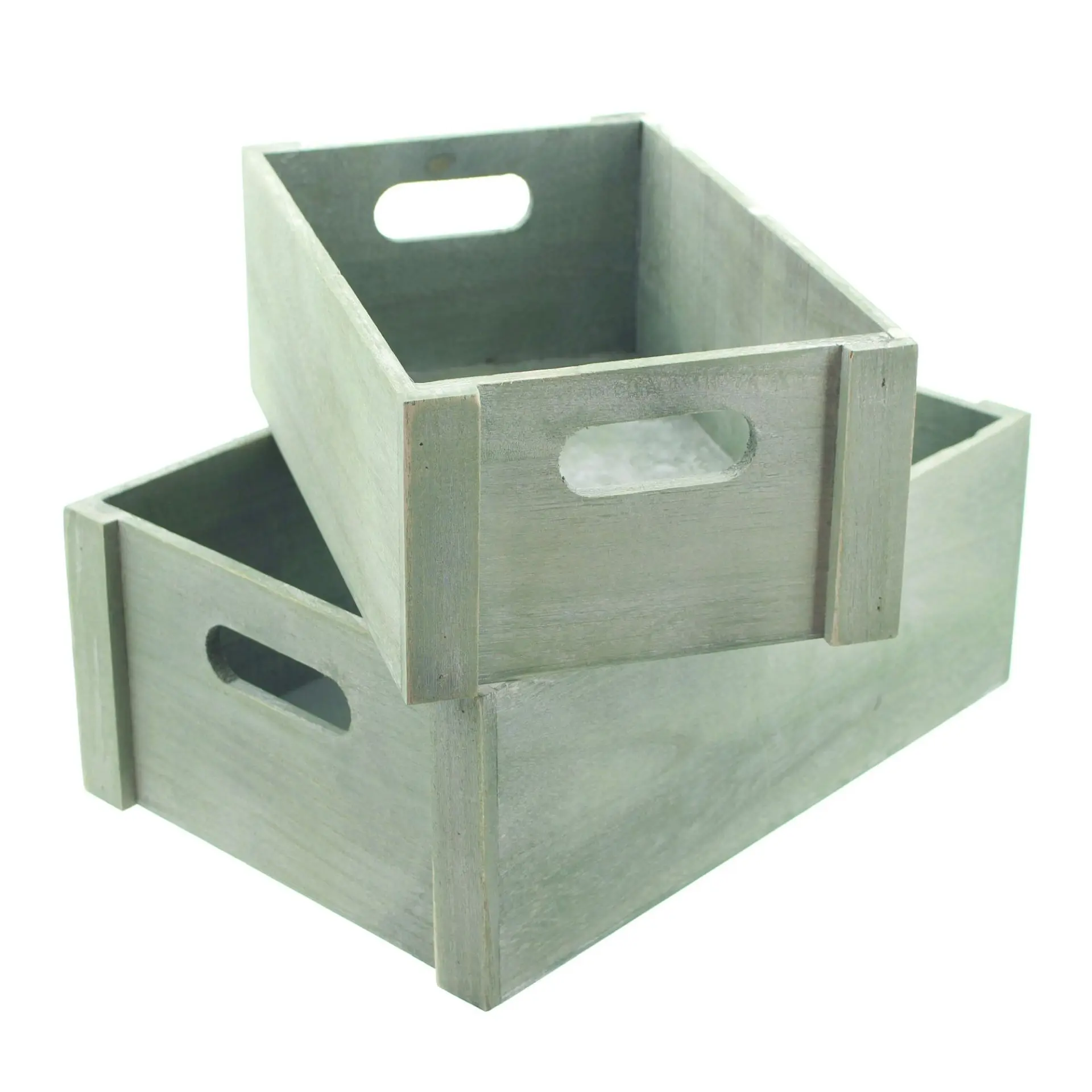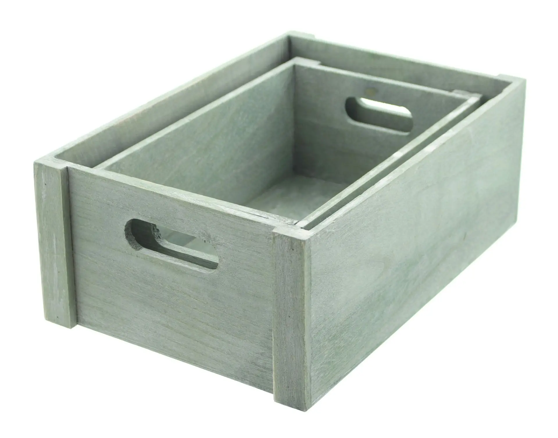 besondere Geschenkverpackung in trendigen Grüntönen, eingearbeitete Griffe, eingefärbtes und weiß gekalktes Paulownia-Holz