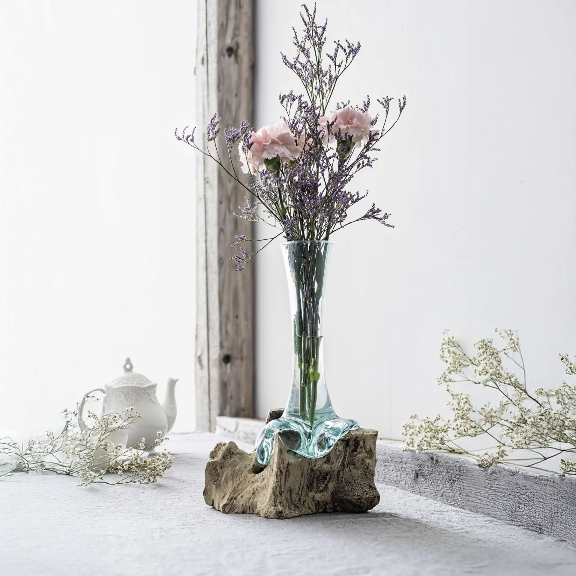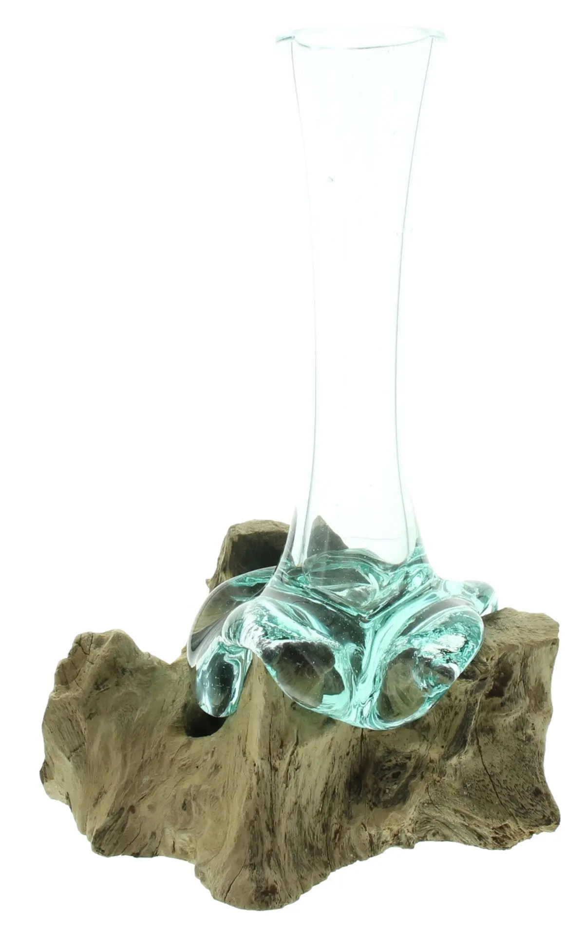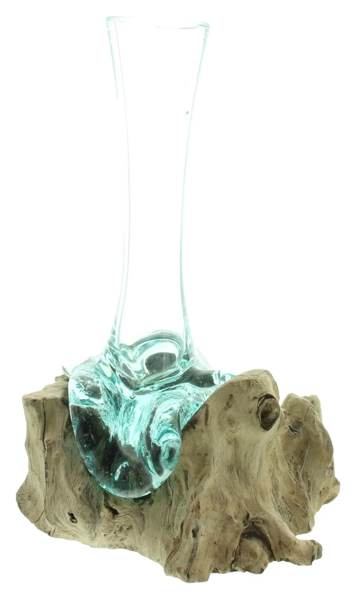 Die Vase "Wurzelholz" ist ein 2-teiliges Meisterwerk balinesischer Handwerkskunst. Der Sockel besteht aus Wurzelholz und trägt ein abnehmbares Glas, das perfekt an die Form des Holzes angepasst ist. Jedes Stück ist ein Unikat und verleiht Ihrem Zuhause einen Hauch von Exklusivität und Eleganz.balinesische Handwerkskunst, Sockel aus Wurzelholz, abnehmbare Glasvase, welches an die Form des Holzes angepasst ist, jedes Stück ein Unikat